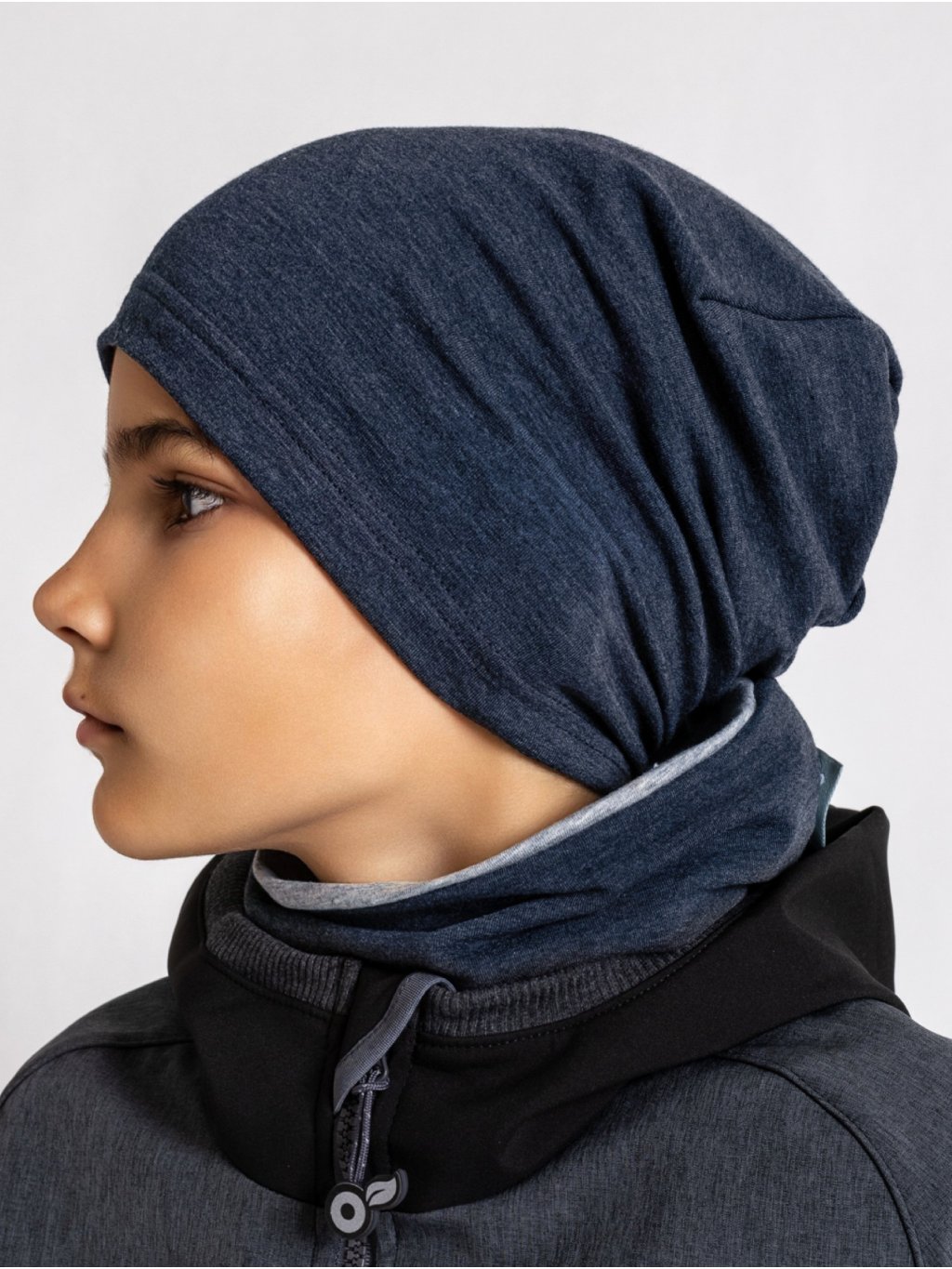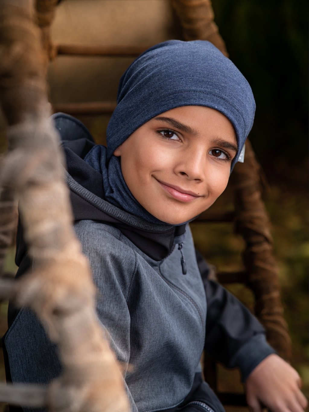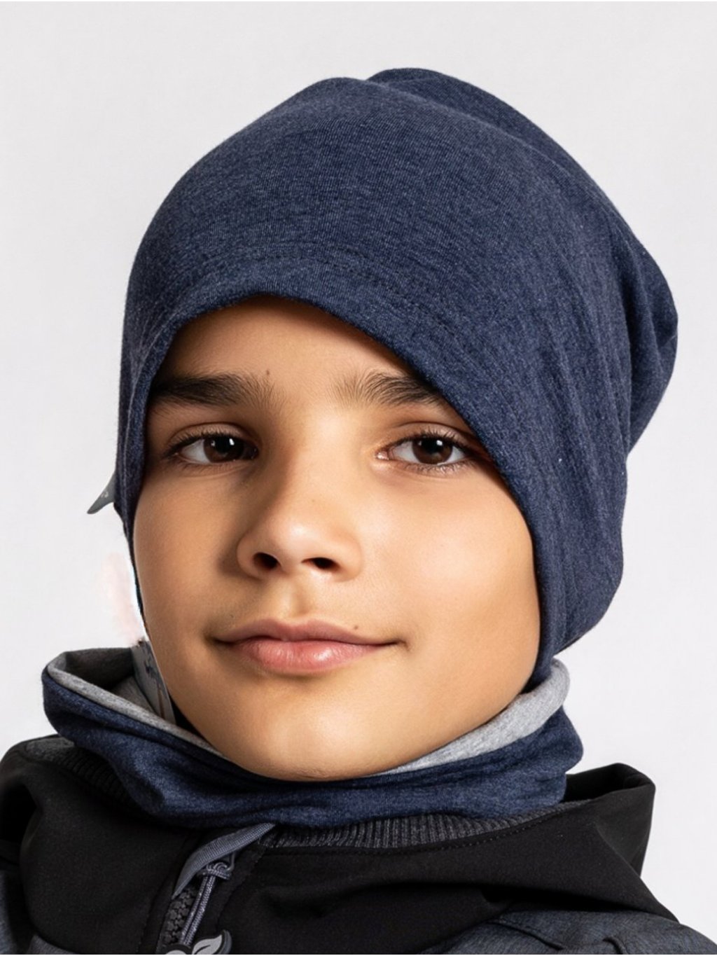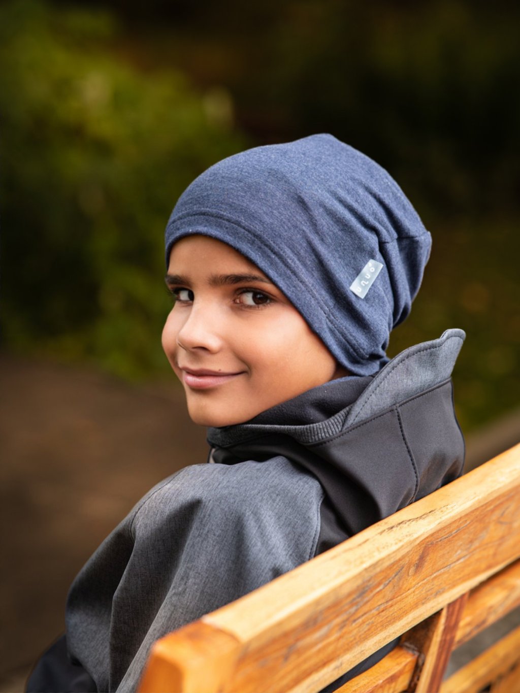 Czapka dziecięca z dzianiny pętelkowej Basic, Ciemne dżinsy