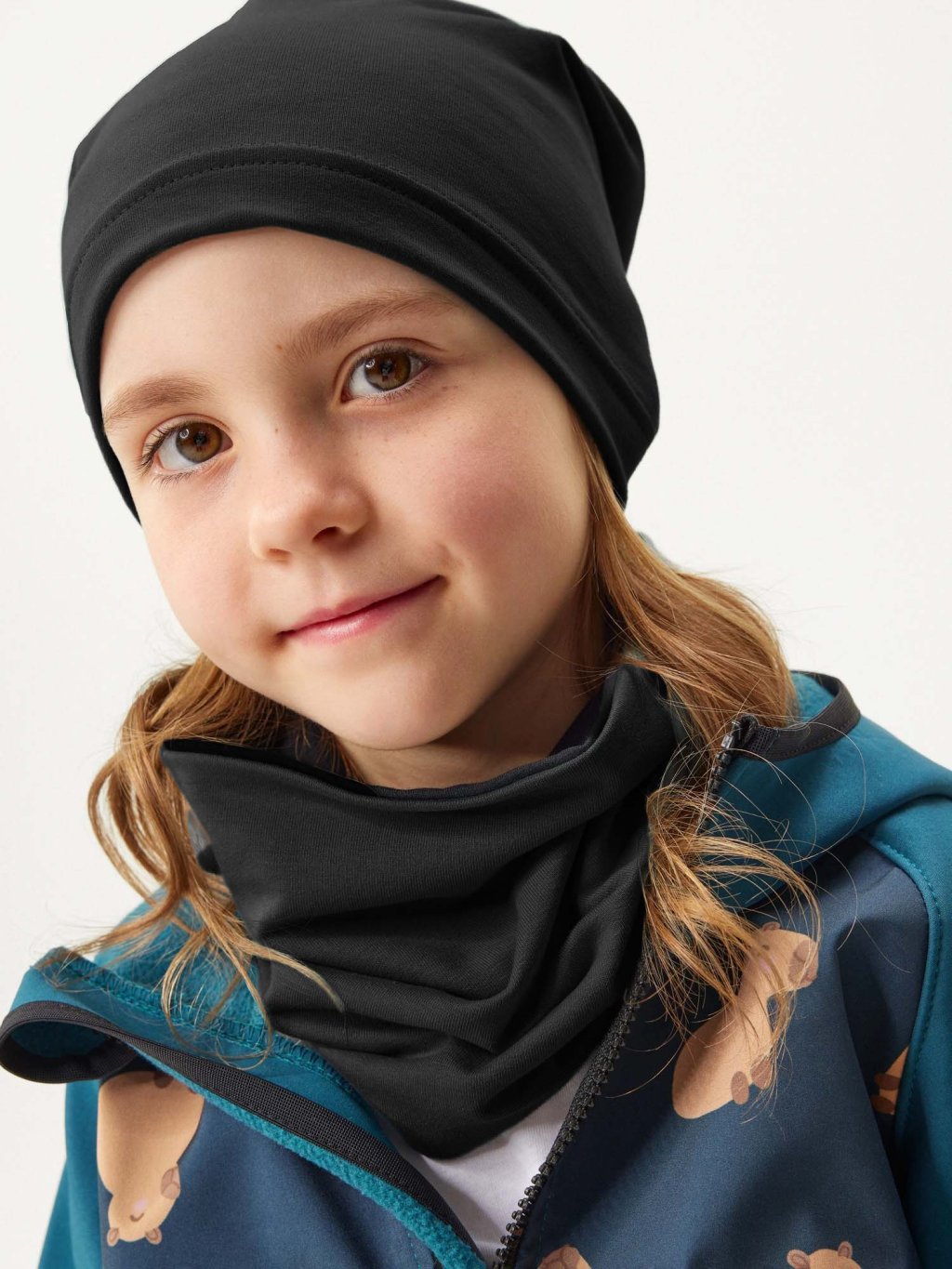 Czapka dziecięca z dzianiny pętelkowej Basic, Czarny