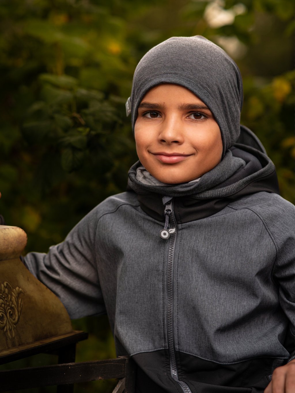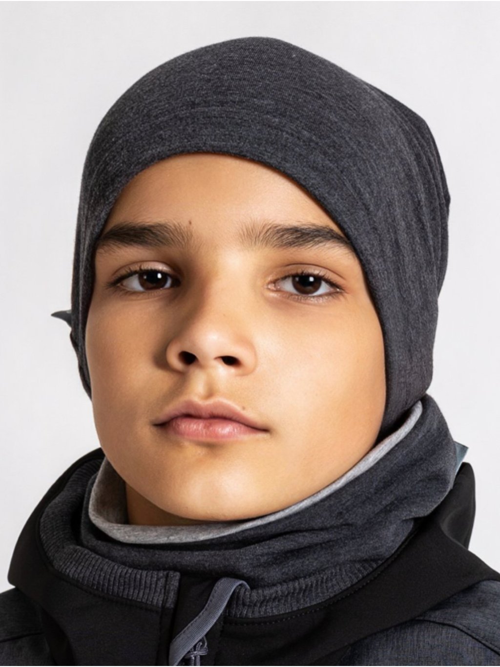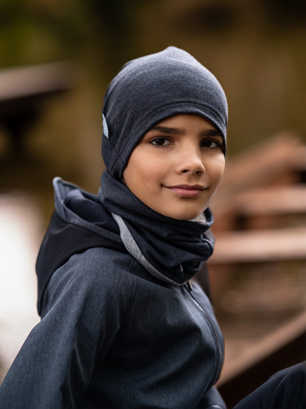 Czapka dziecięca z dzianiny pętelkowej Basic, Grafitowy szary