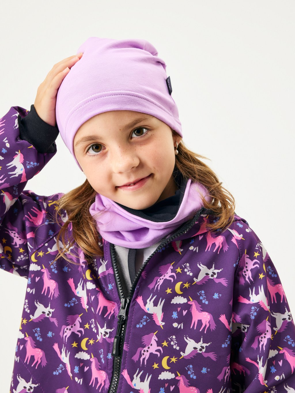 Czapka dziecięca z dzianiny pętelkowej Basic, Lila