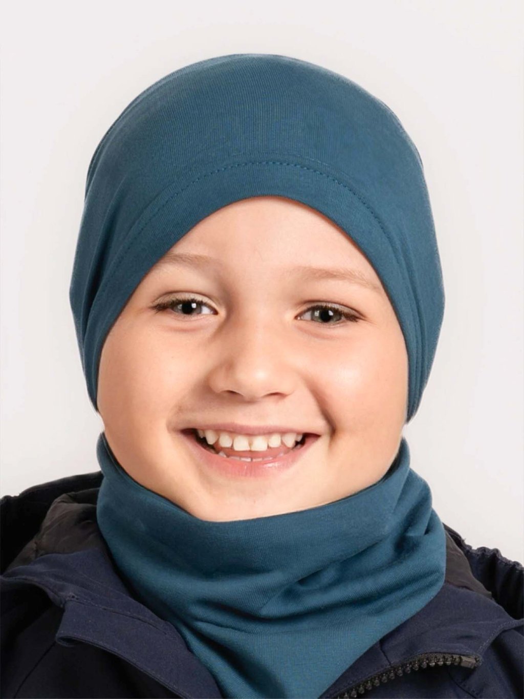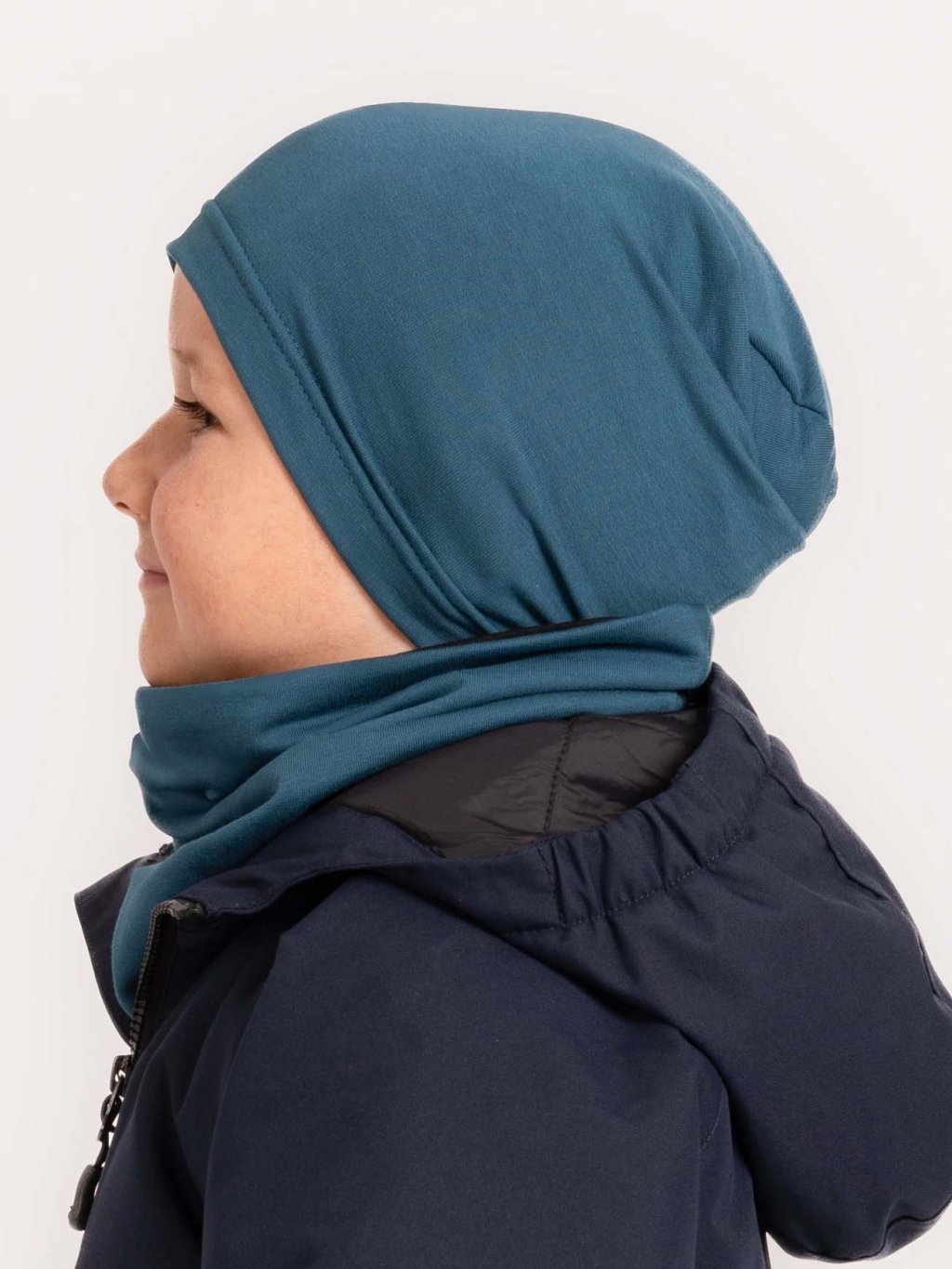 Czapka dziecięca z dzianiny pętelkowej Basic, Petrol blue