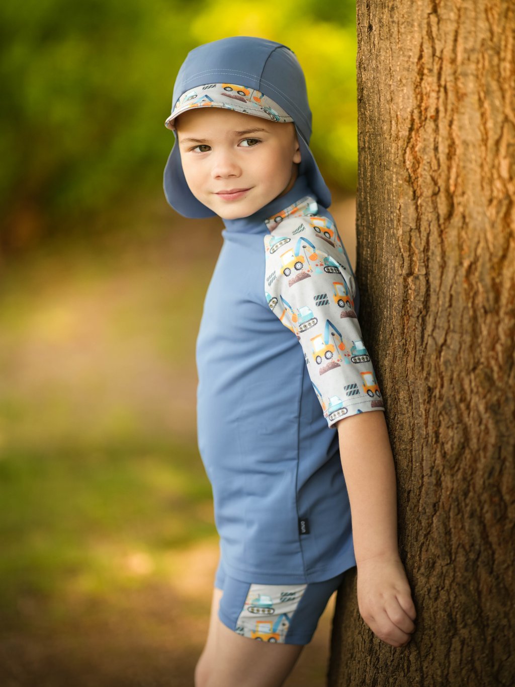 Czapka dziecięca z ochroną UV 50, Niebieski, Koparki
