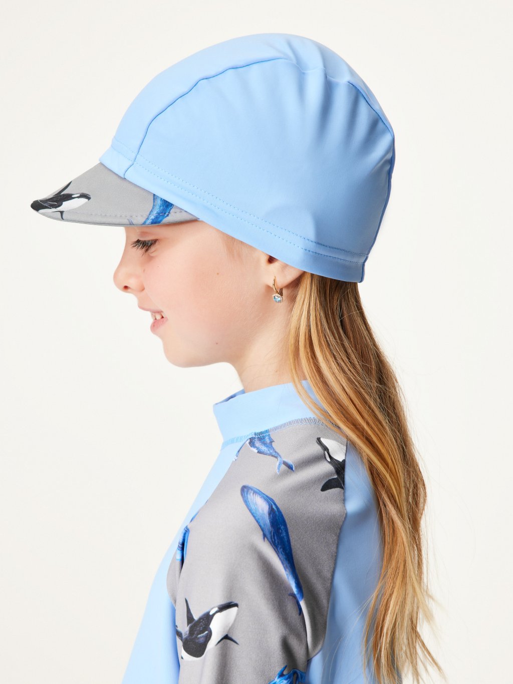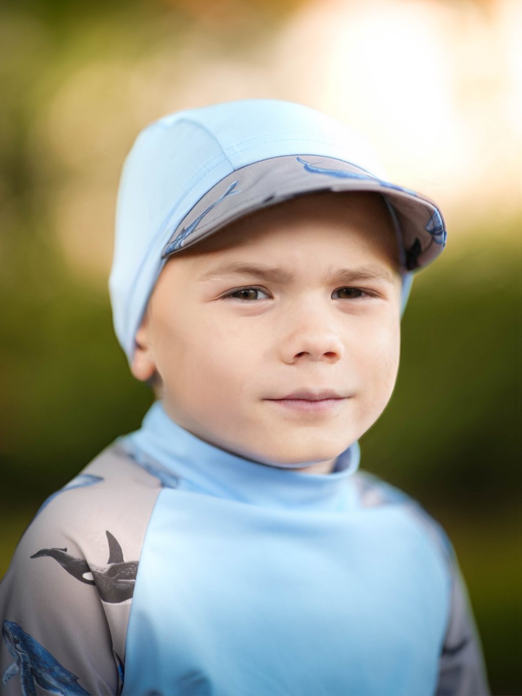 Czapka dziecięca z ochroną UV 50, Św. Niebieski, Wieloryby