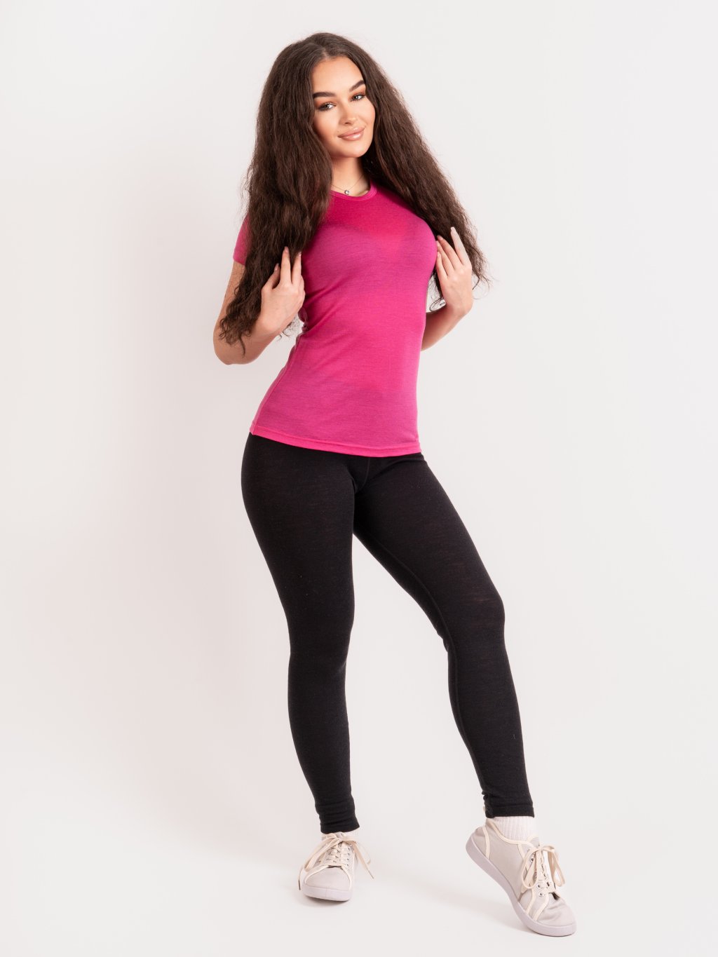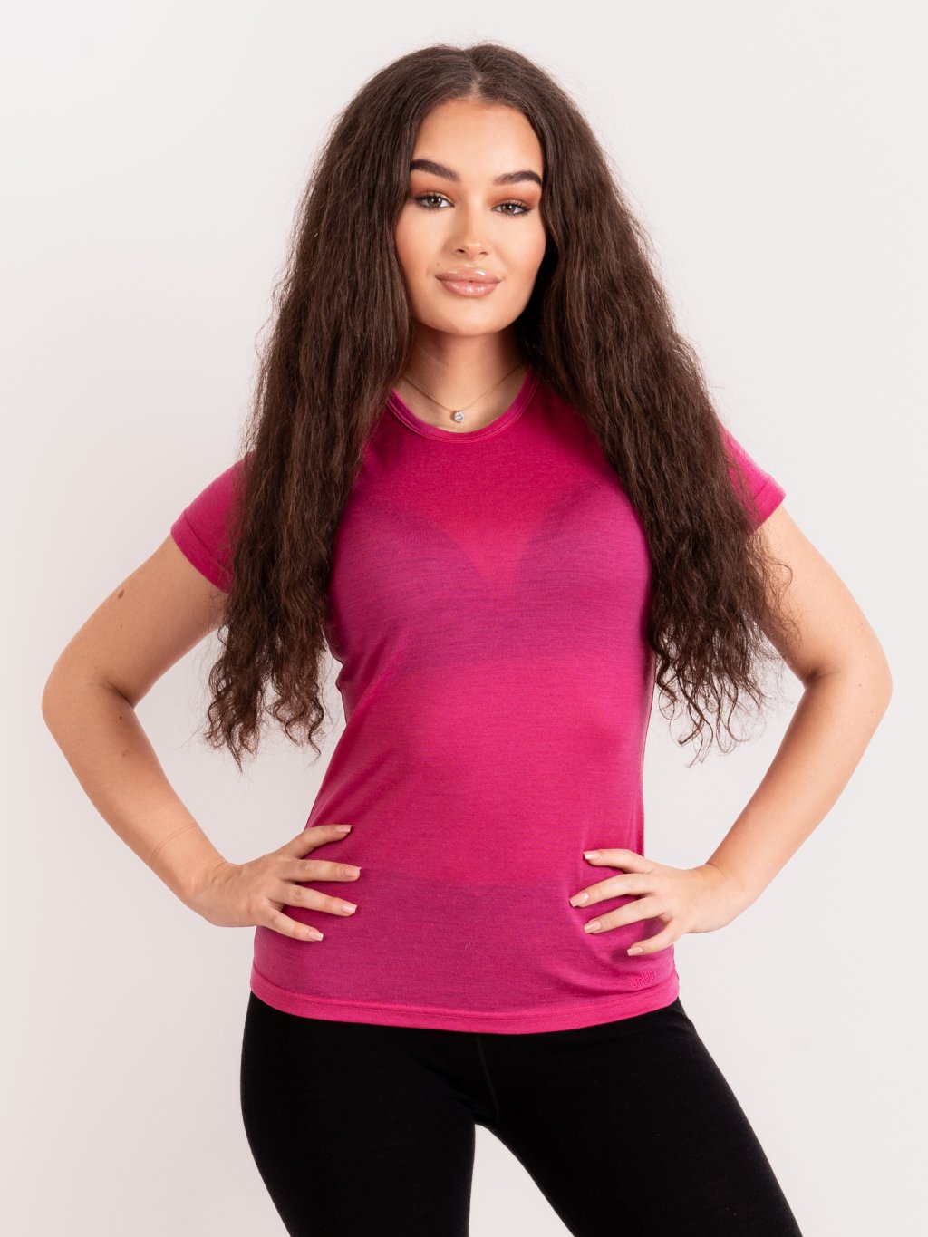 Damska koszulka merino z krótkim rękawem Nature, Fuksja