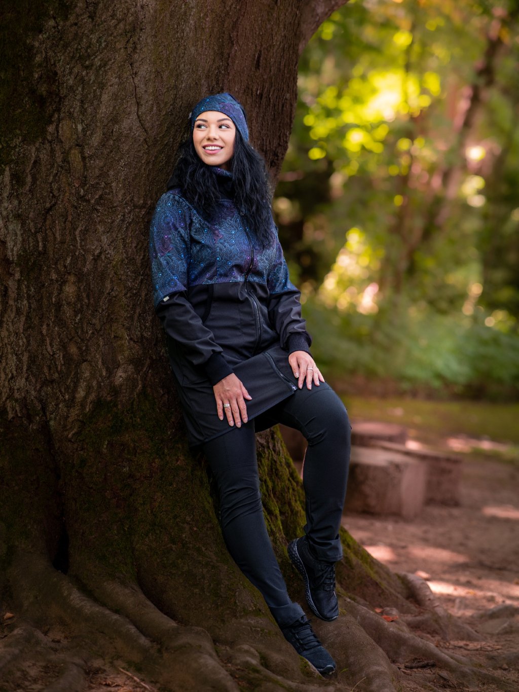 Damski płaszcz softshell z polarem Street, Czarny, Ciemna mandala