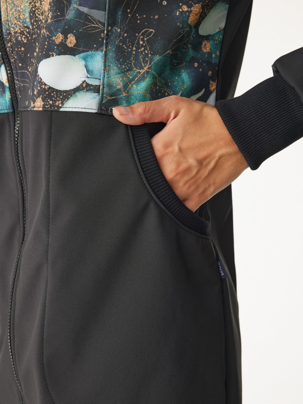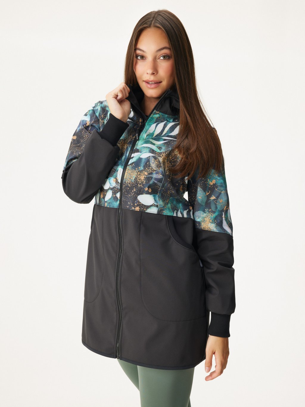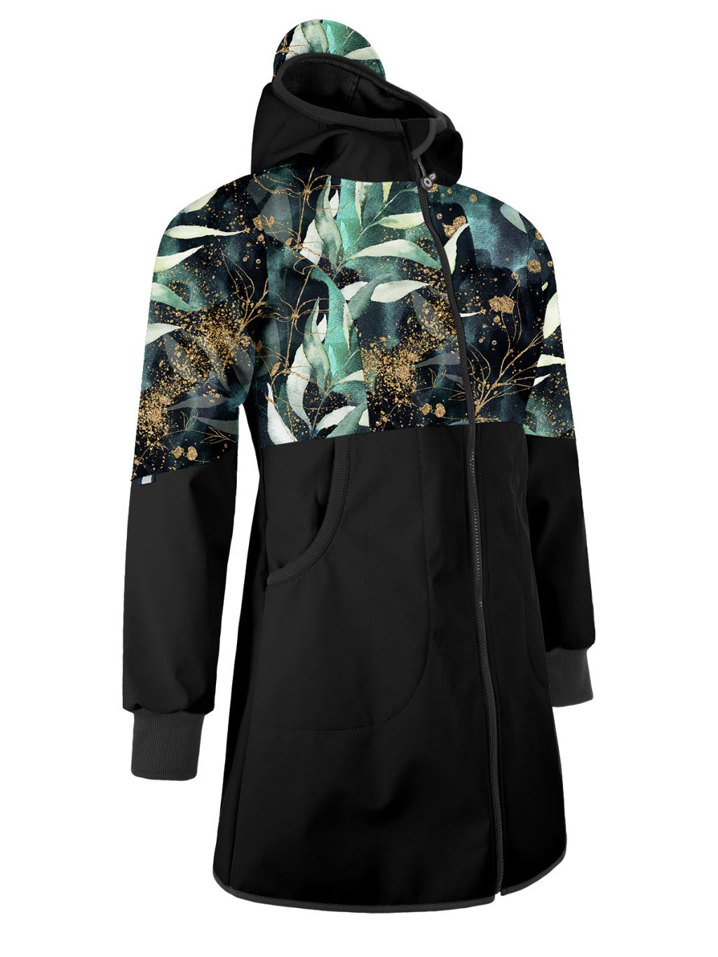 Damski płaszcz softshell z polarem Street, Czarny, Liście i gałązki
