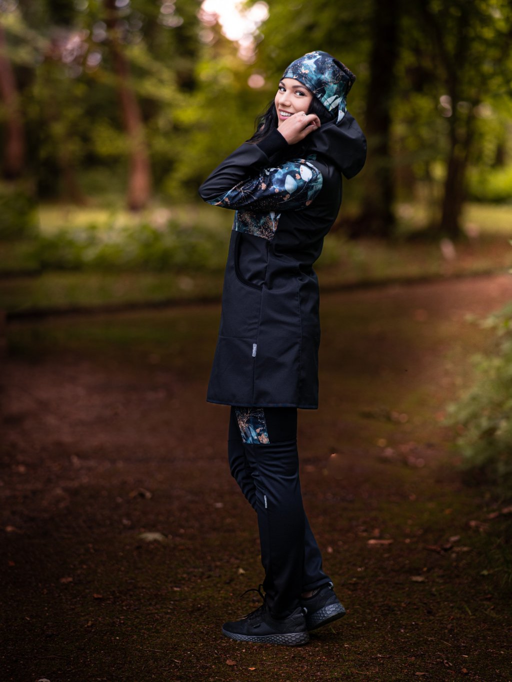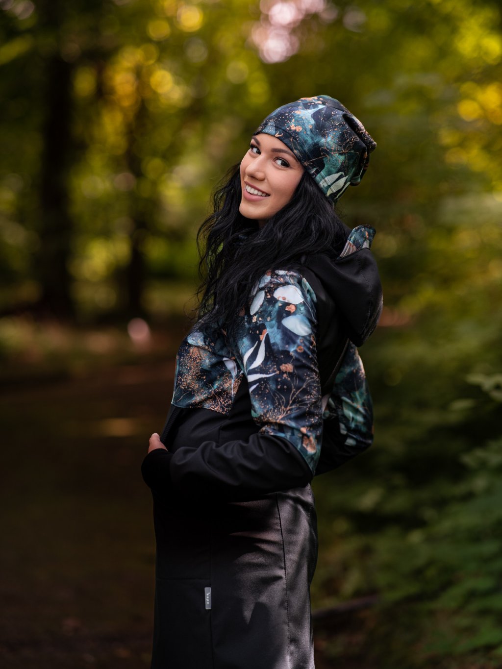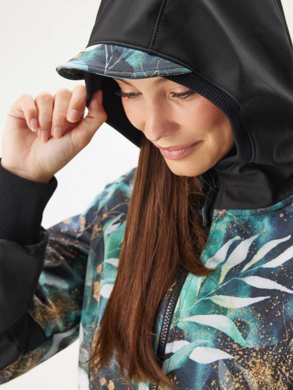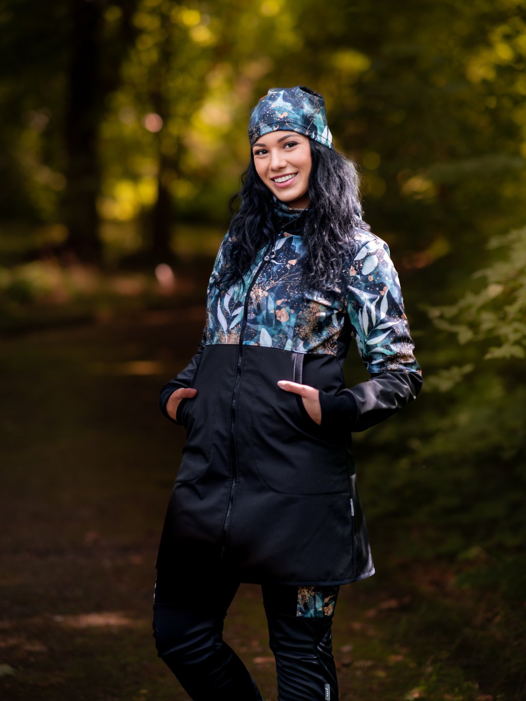 Damski płaszcz softshell z polarem Street, Czarny, Liście i gałązki