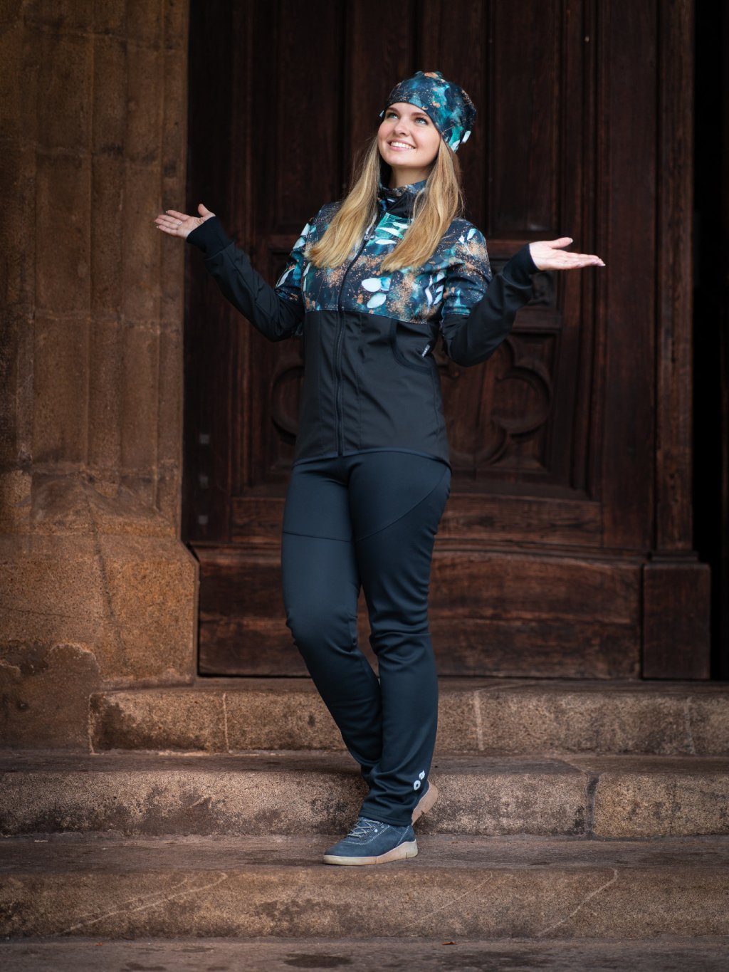 - Talia, dół (softshell): materiał wierzchni: 100% poliester, membrana: 100% poliuretan