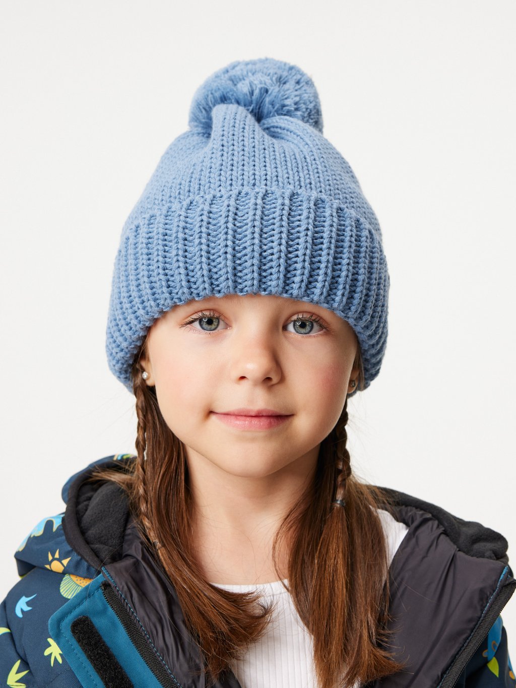 Dziecięca czapka z dzianiny Bobble, Niebieski