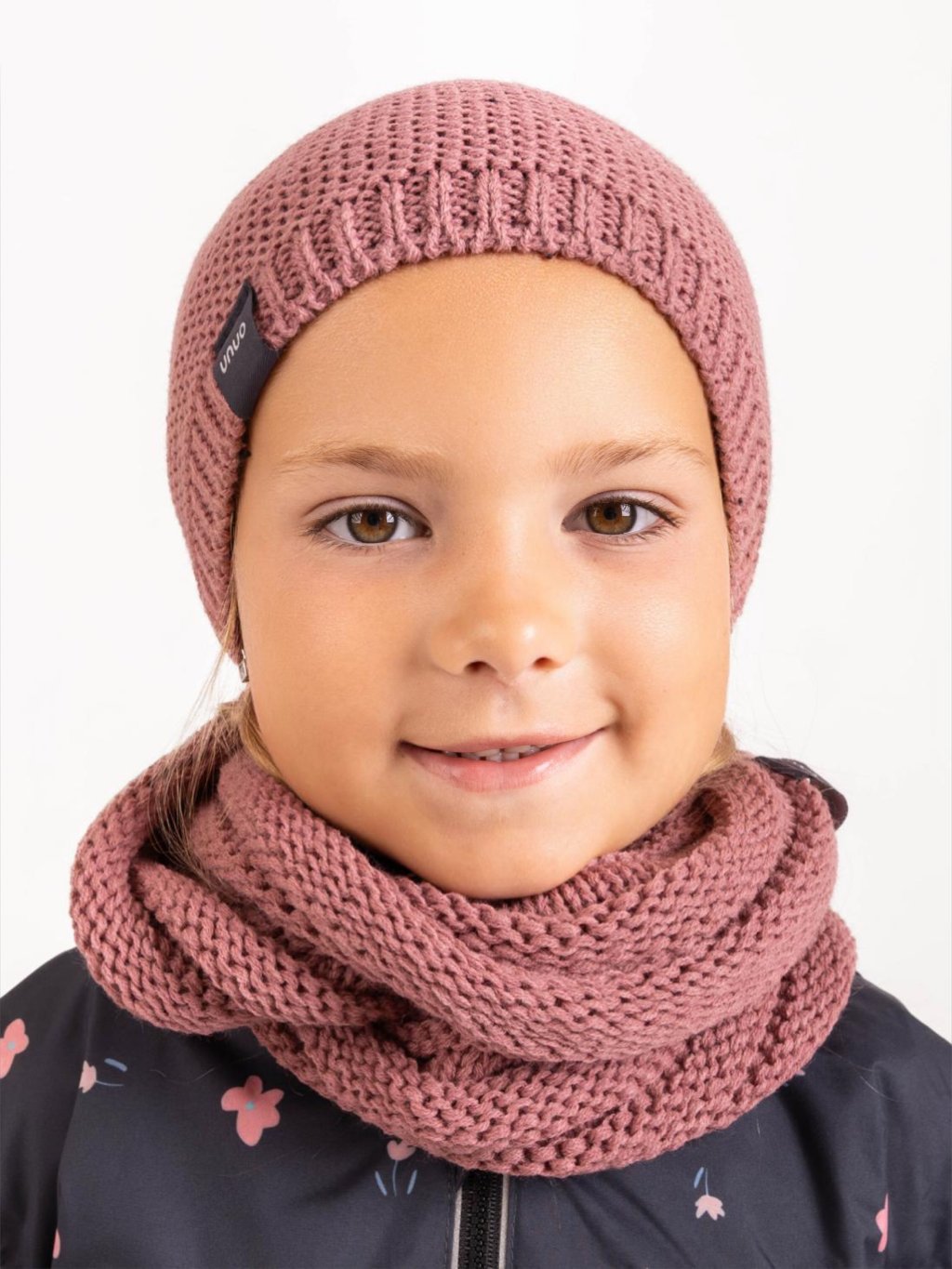 Dziecięca czapka z dzianiny Warm, Stara róża