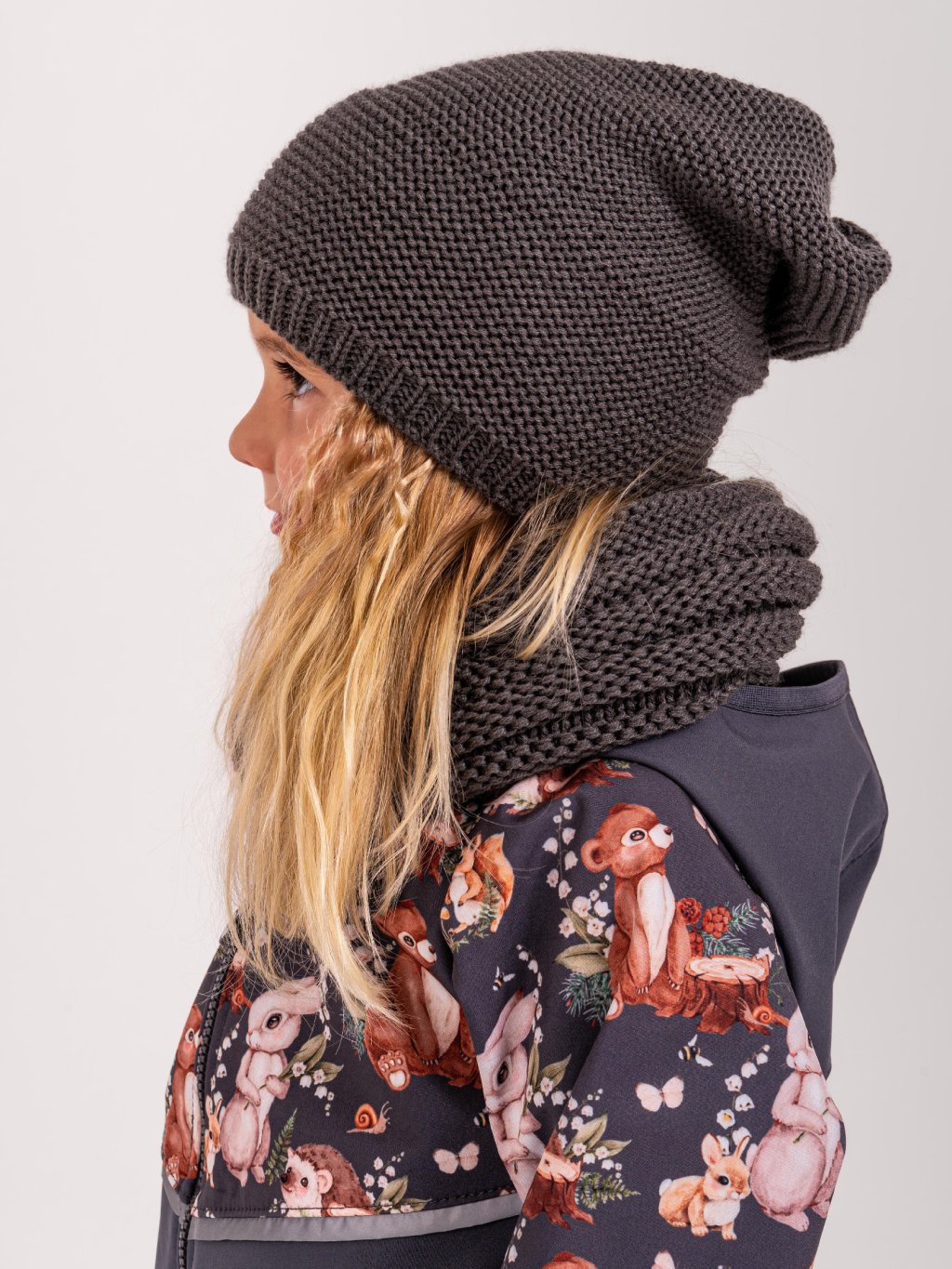 Dziecięca czapka z dzianiny Warm, Szary