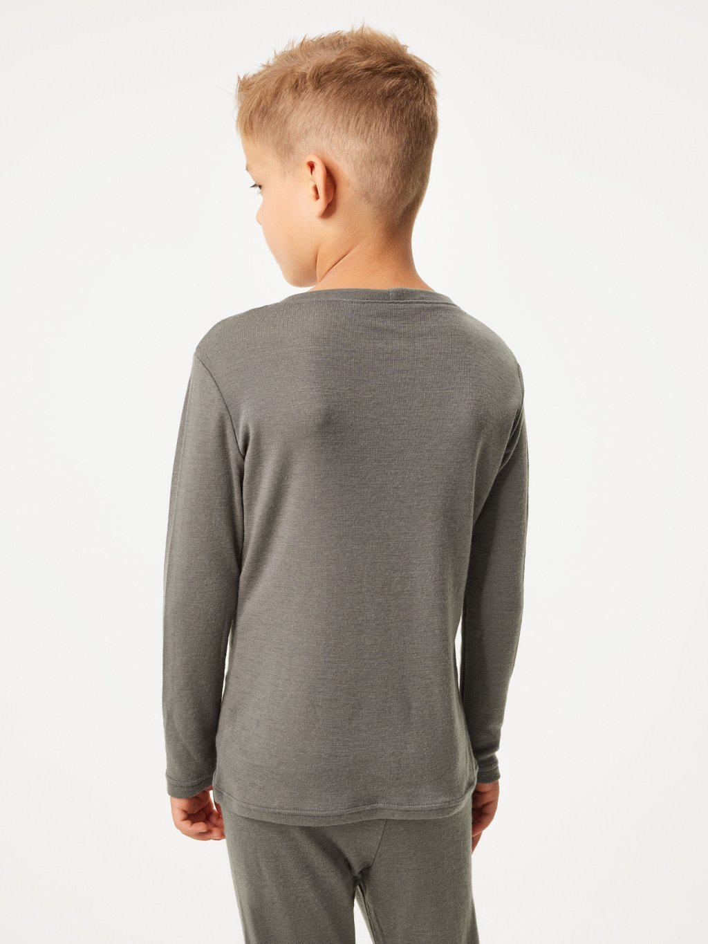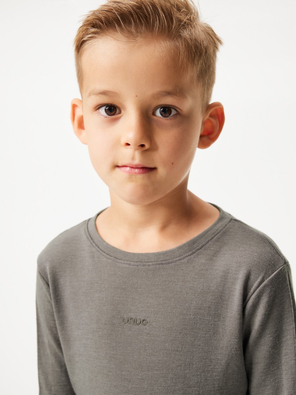 Dziecięca koszula merino z długim rękawem, Brązowy