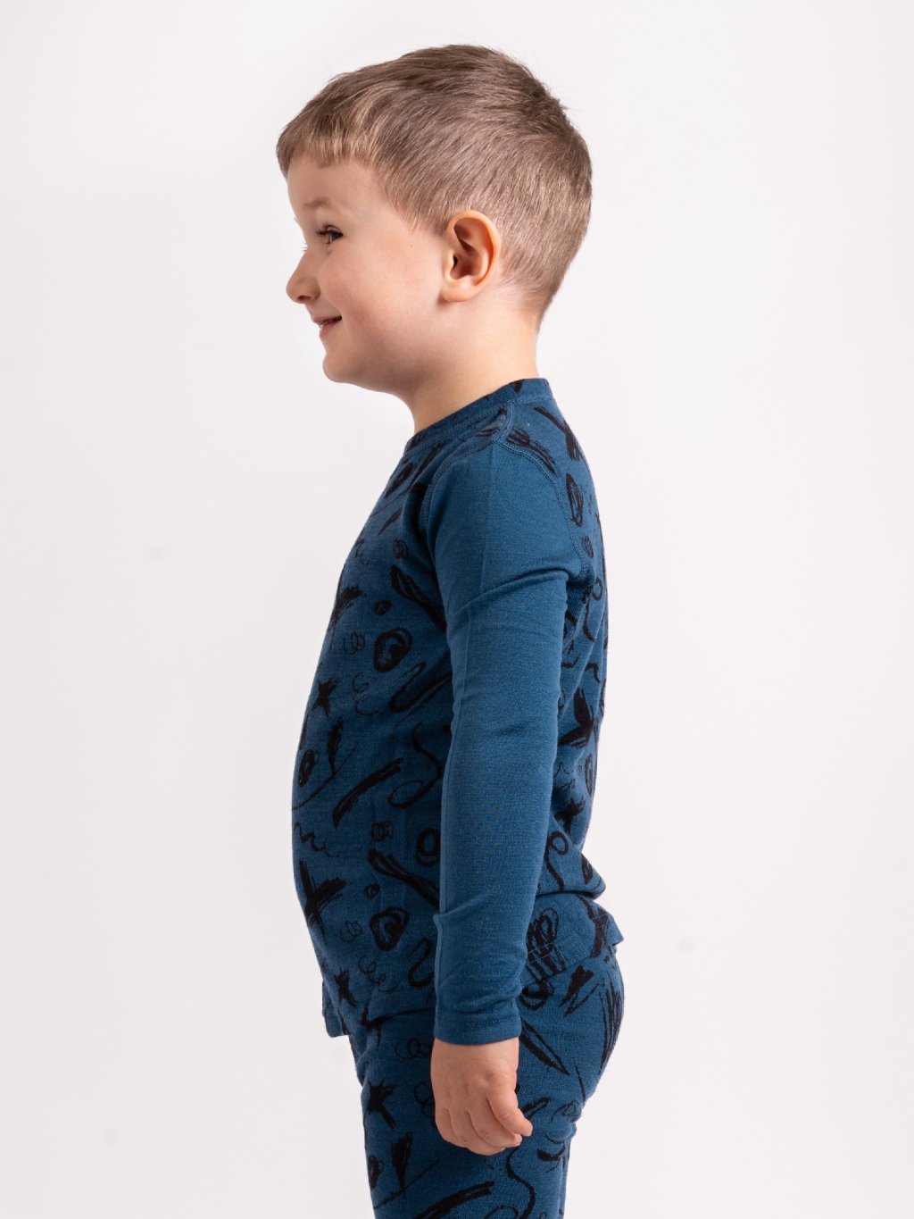 Dziecięca koszula merino z długim rękawem Nature, Petrol blue, Rysunek