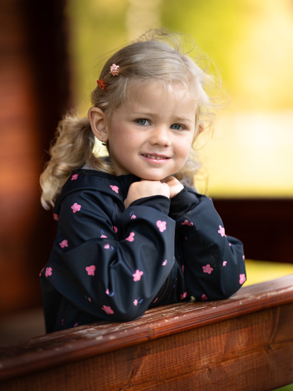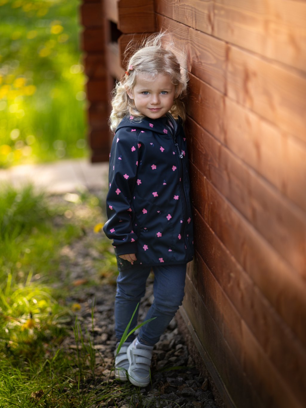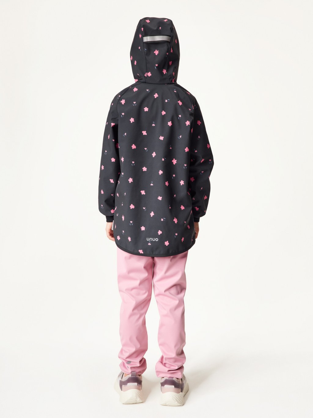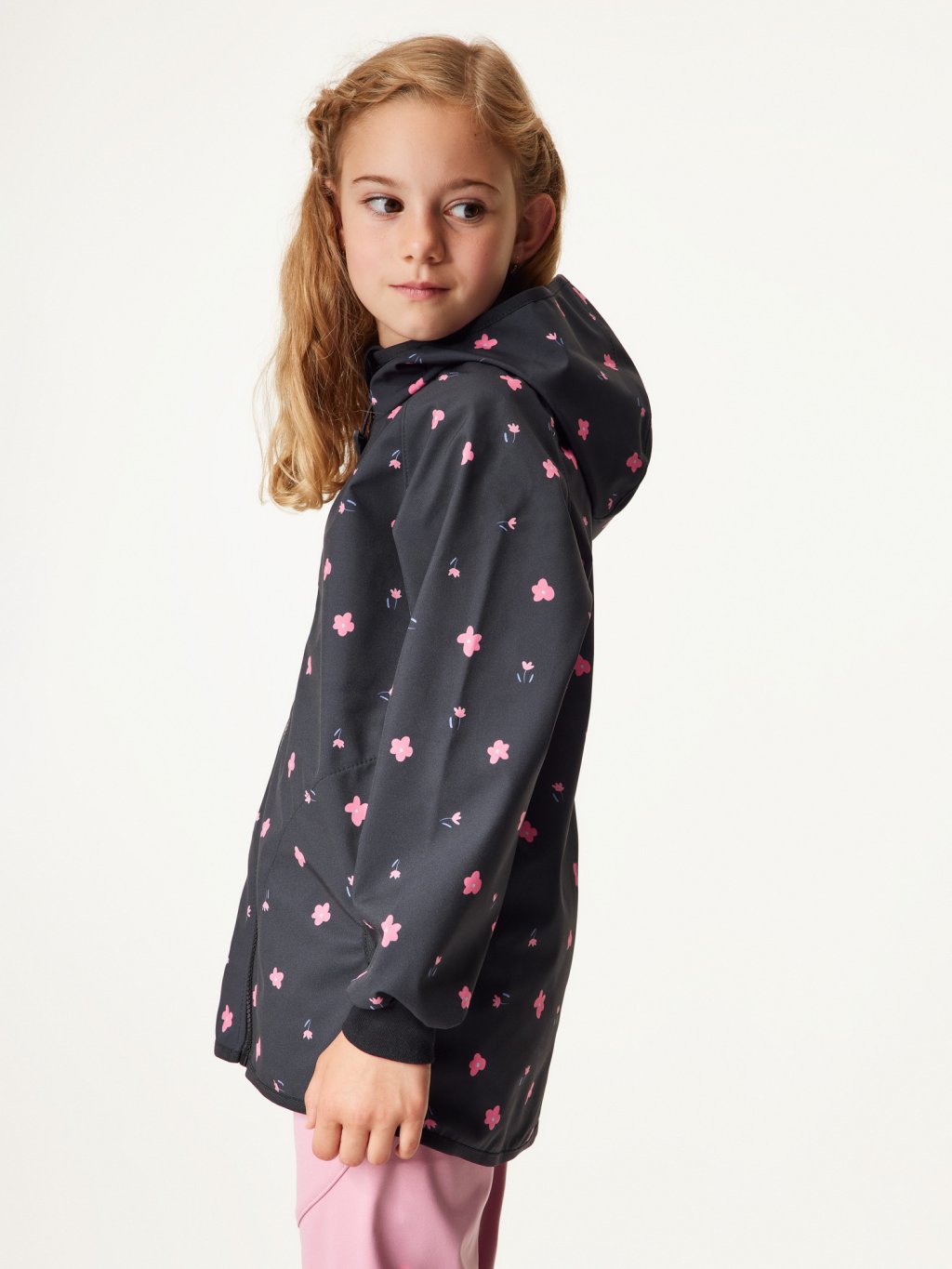 Dziecięca kurtka softshell bez ocieplenia, elastyczna Basic, Czarny, Kwiaty