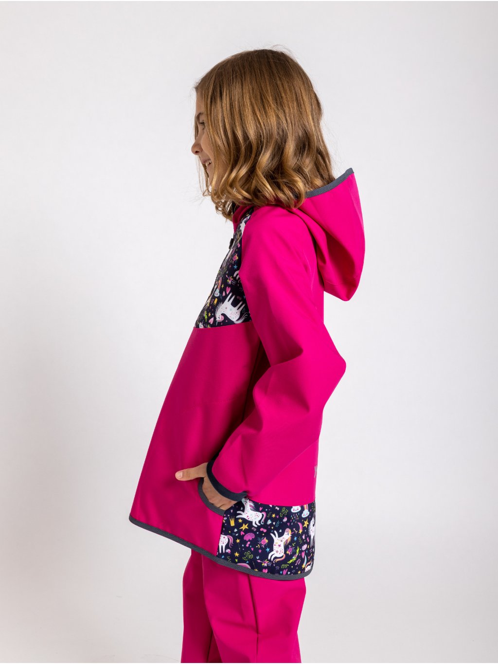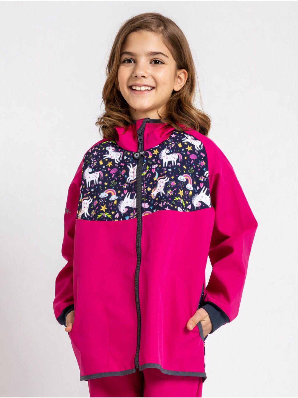 Dziecięca kurtka softshell bez ocieplenia, elastyczna Basic, Fuksja, Jednorożce