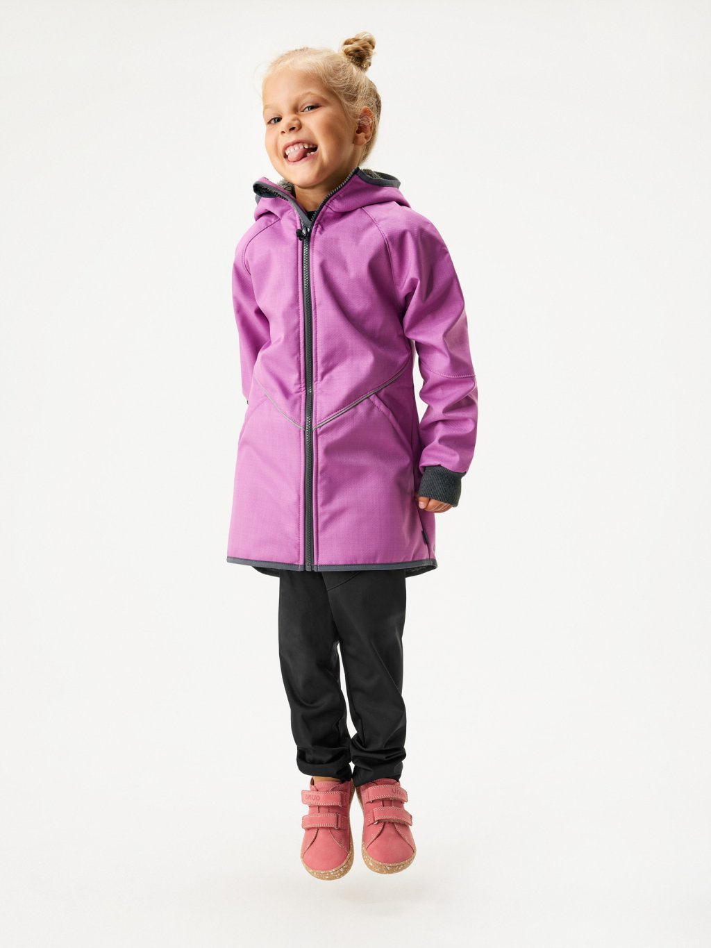 Kurtka softshellowa, która zamiast polaru od wewnątrz ma polar, aby zapewnić dzieciom ciepło w chłodniejsze dni. Nadaje się zarówno do szkoły, jak i na zimowe spacery i inne przygody. Naszywki na rękawach chronią przed przemakaniem i sprawiają, że kurtka dosłownie rośnie wraz z dzieckiem. Kurtka ma dłuższy krój, dzięki czemu dziecko może w pełni skupić się na odkrywaniu świata na świeżym powietrzu i nie tracić czasu na ściąganie kurtki. Bezpieczeństwo jest dla nas priorytetem, więc oprócz standardowych funkcji bezpieczeństwa, wyposażyliśmy kurtkę w nowe odblaskowe paski, które zwiększają widoczność, zarówno podczas wczesnych wieczornych spacerów, jak i porannych aktywności.