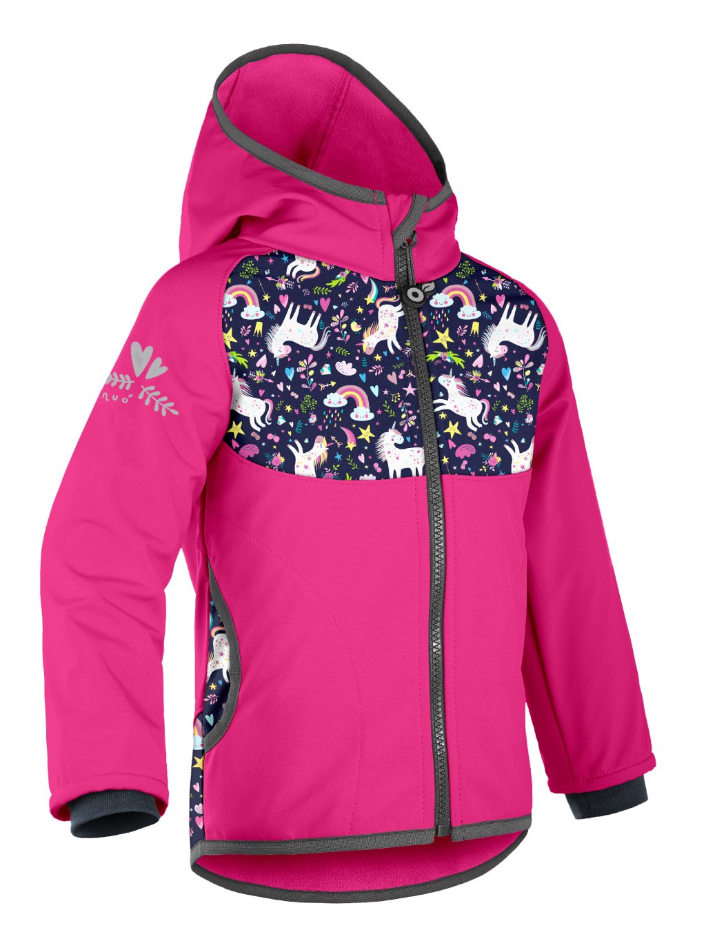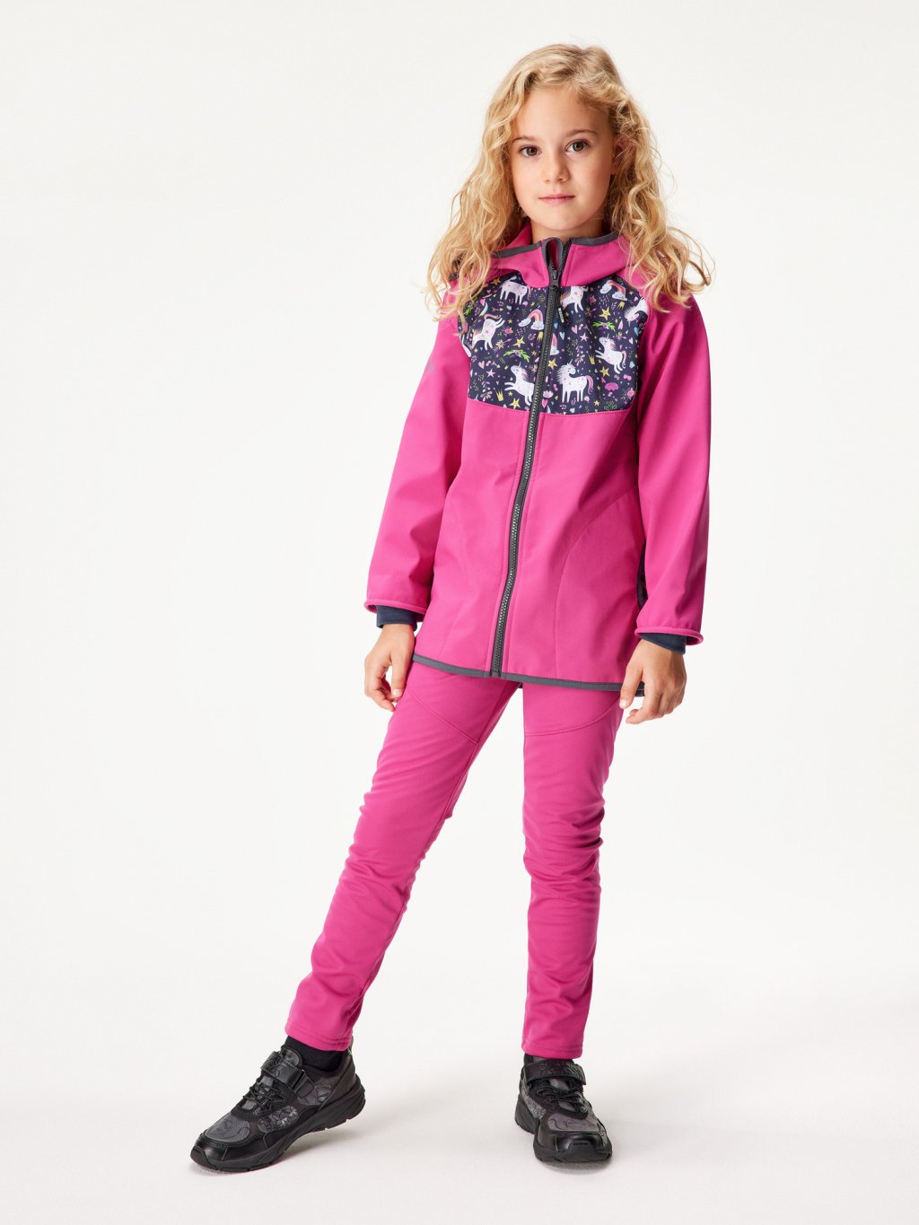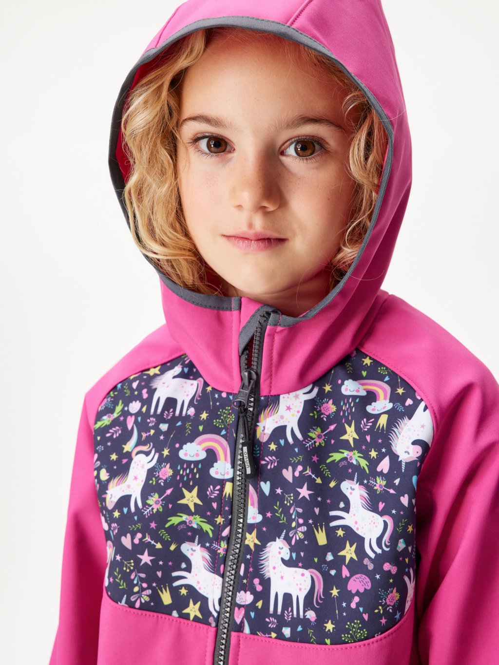 Dziecięca kurtka softshell z polarem Basic, Fuksja, Jednorożce