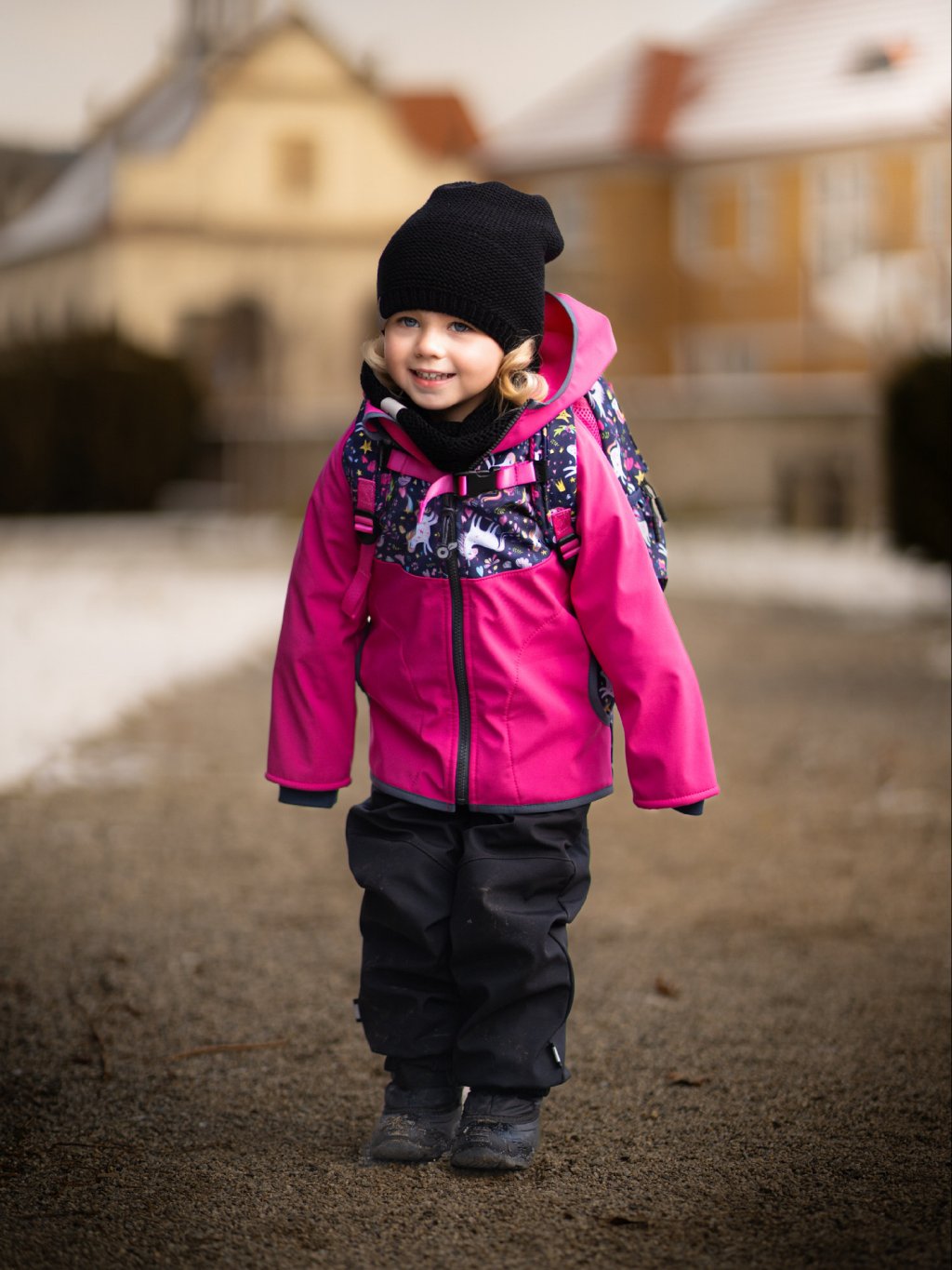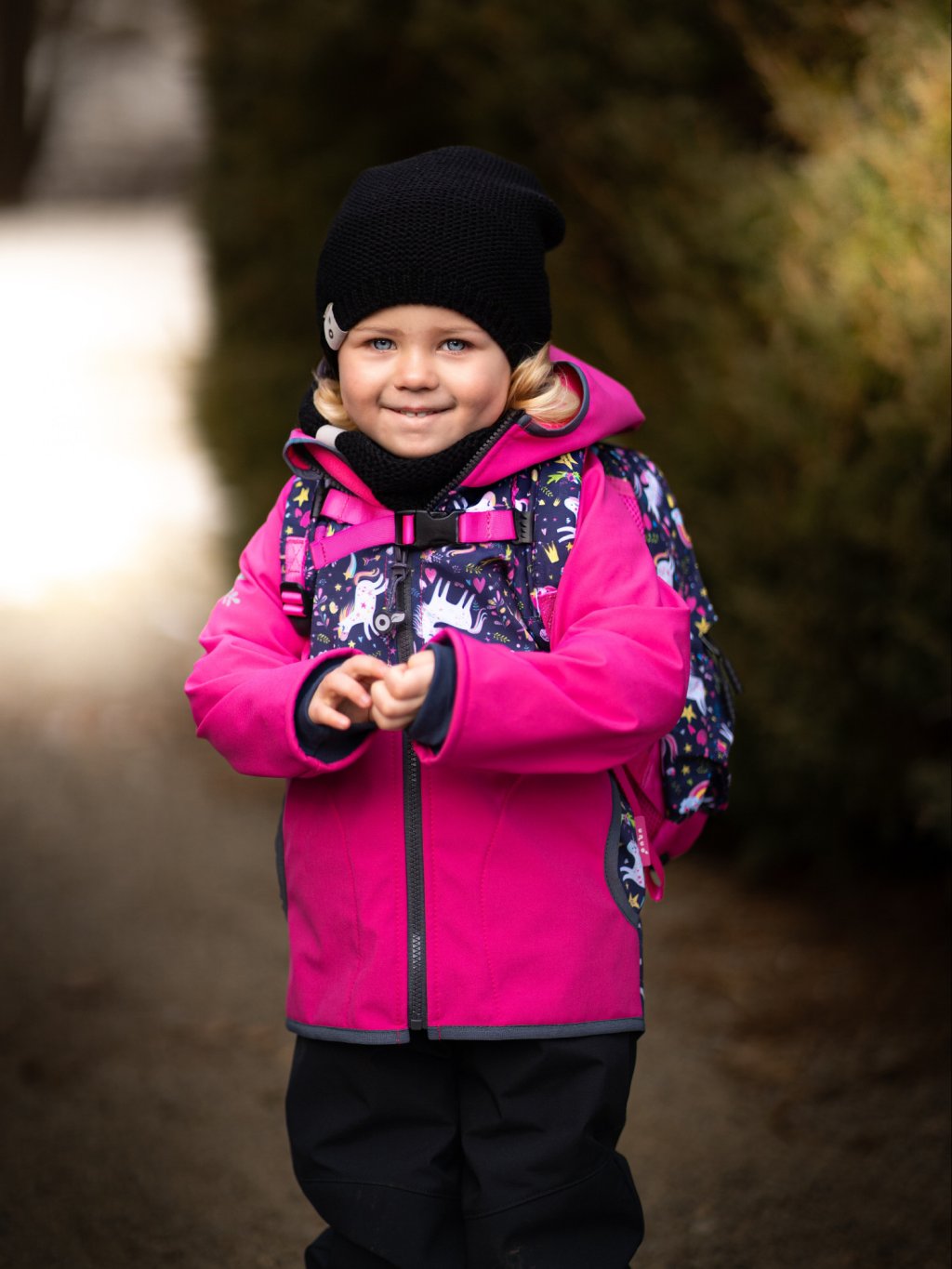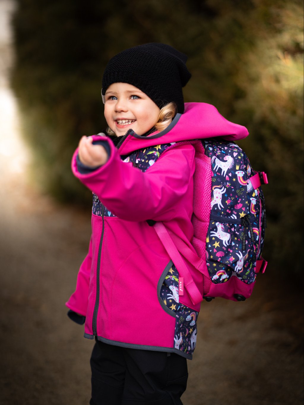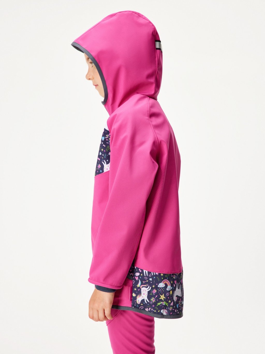 Dziecięca kurtka softshell z polarem Basic, Fuksja, Jednorożce