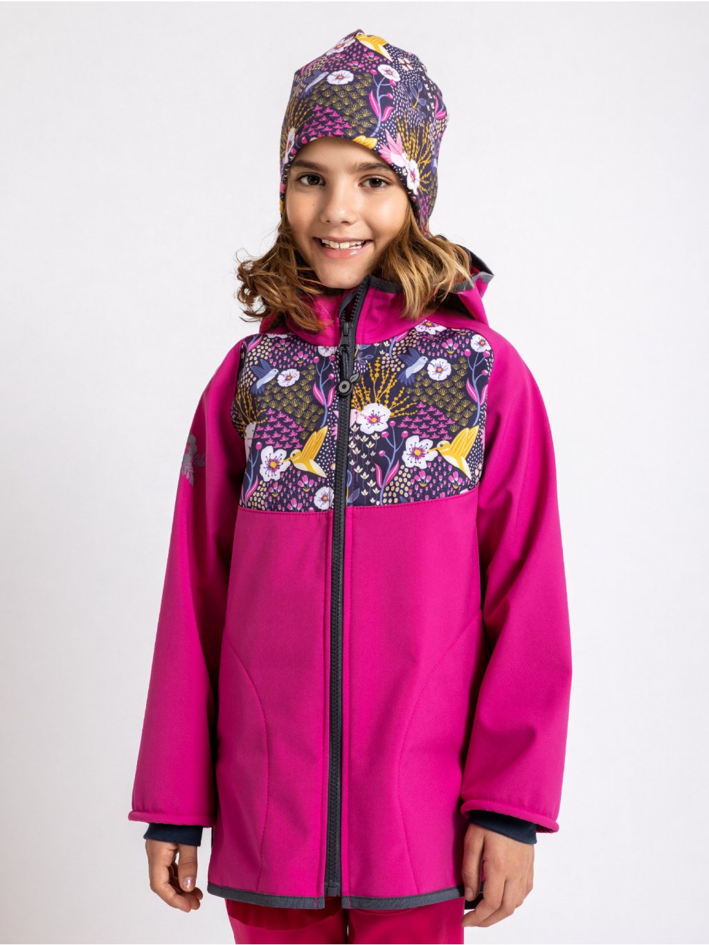 Dziecięca kurtka softshell z polarem Basic, Fuksja, Koliber