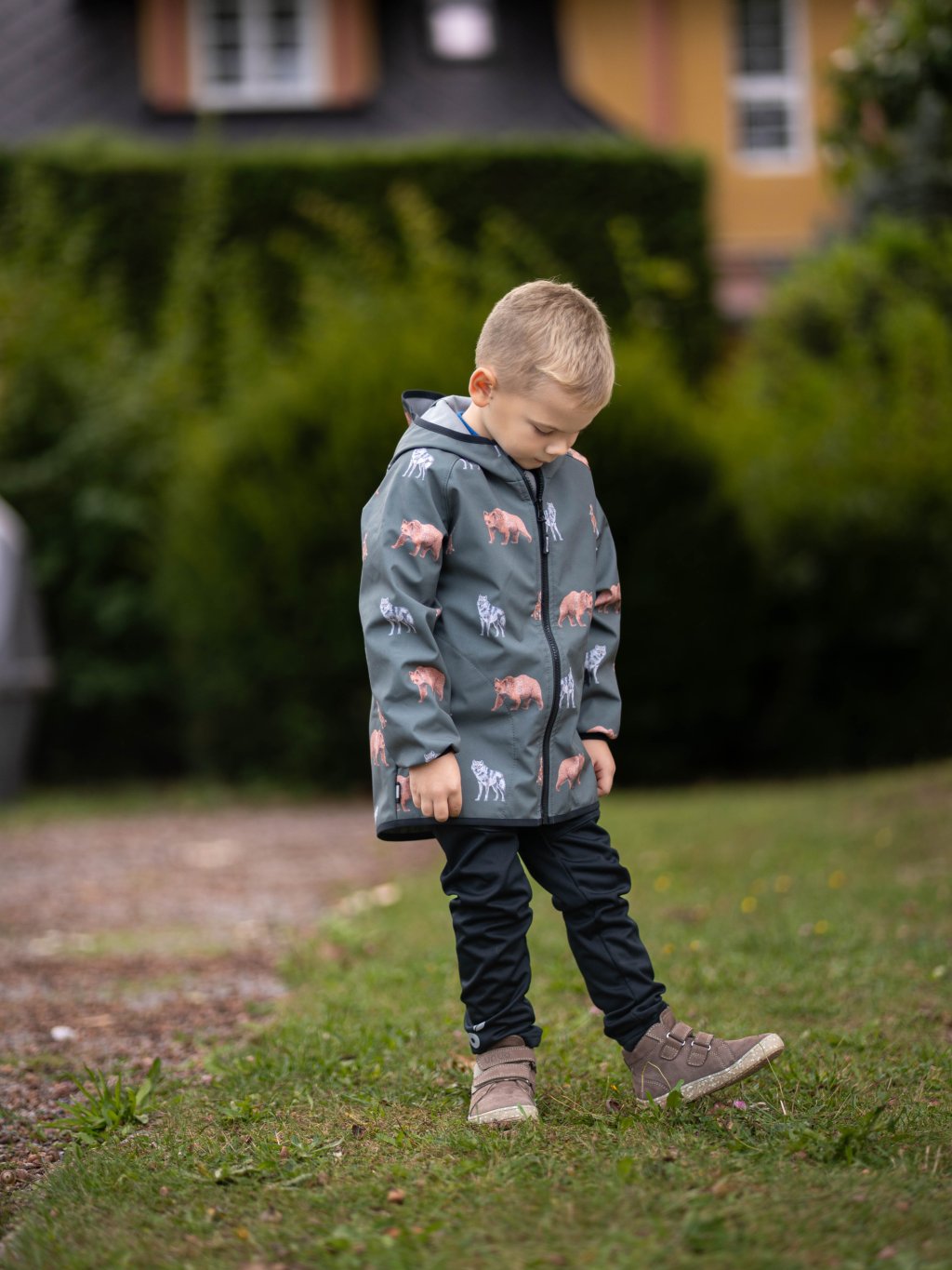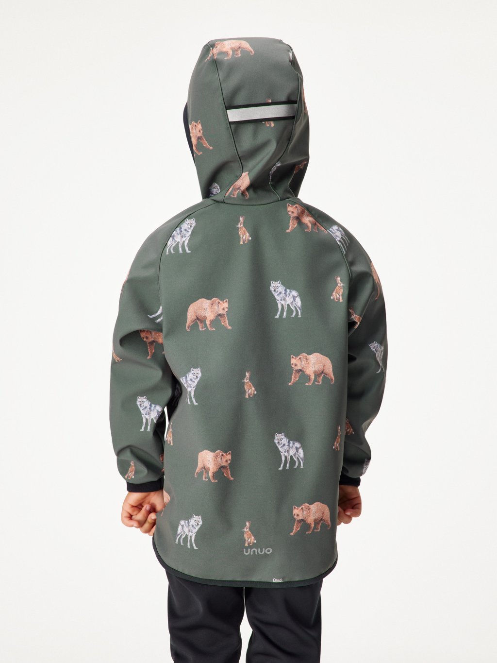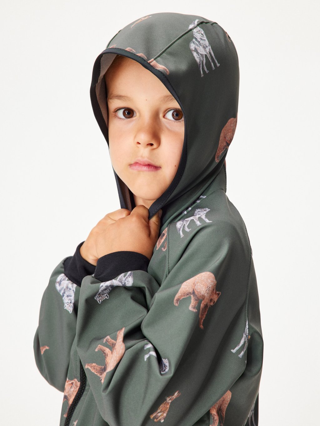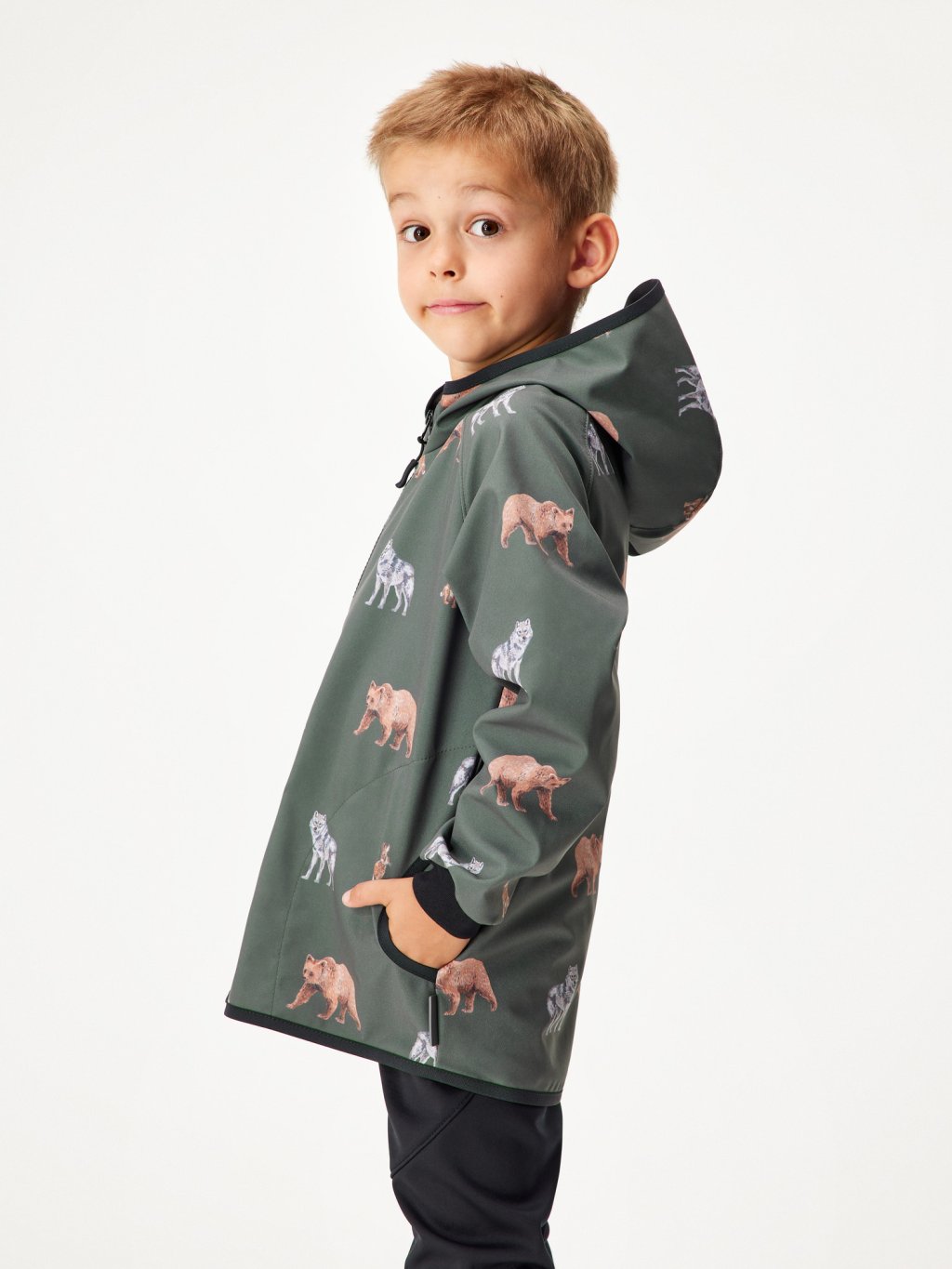 Dziecięca kurtka softshell z polarem Basic, Khaki, Zwierzęta leśne
