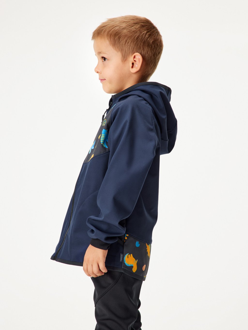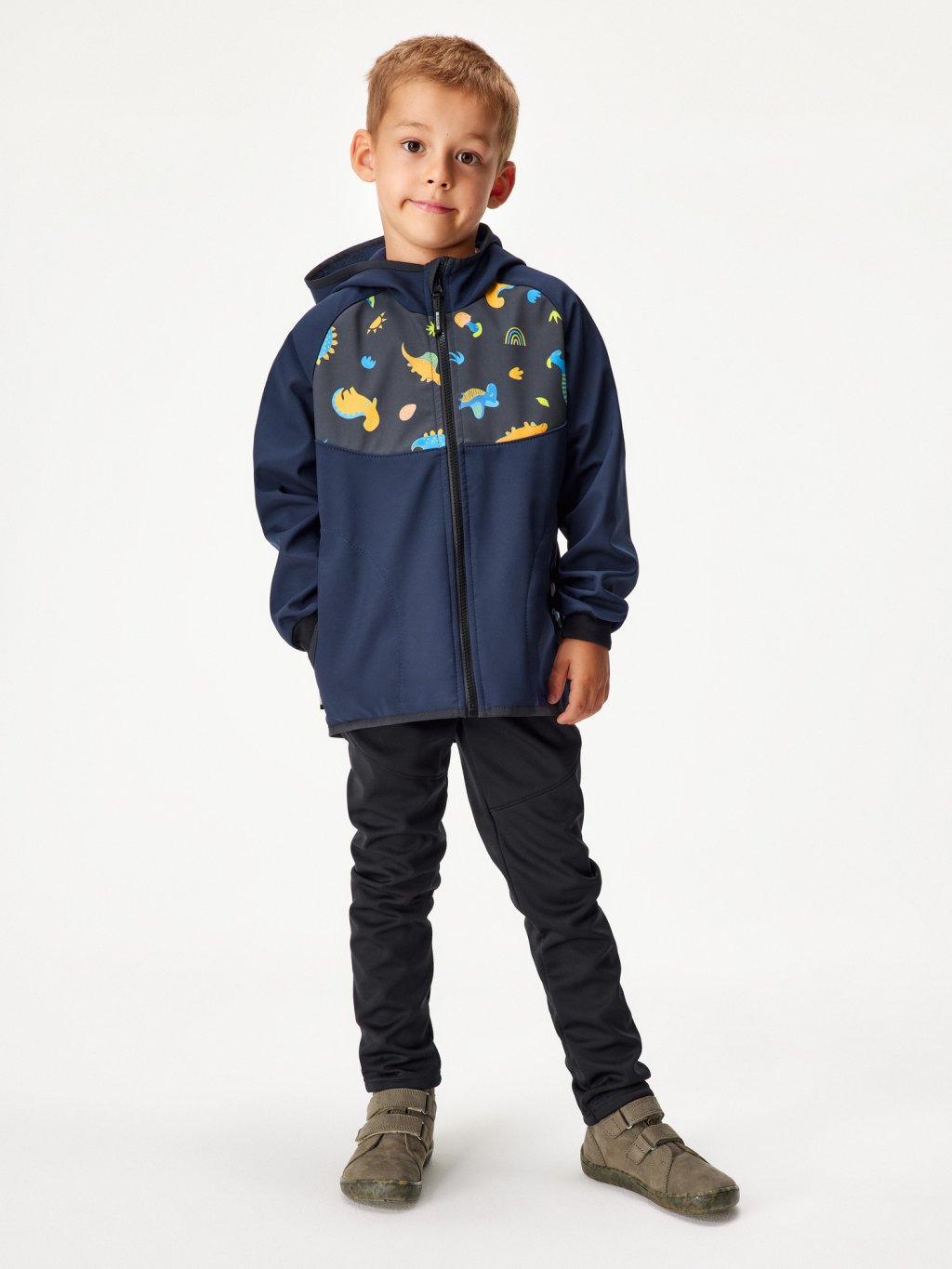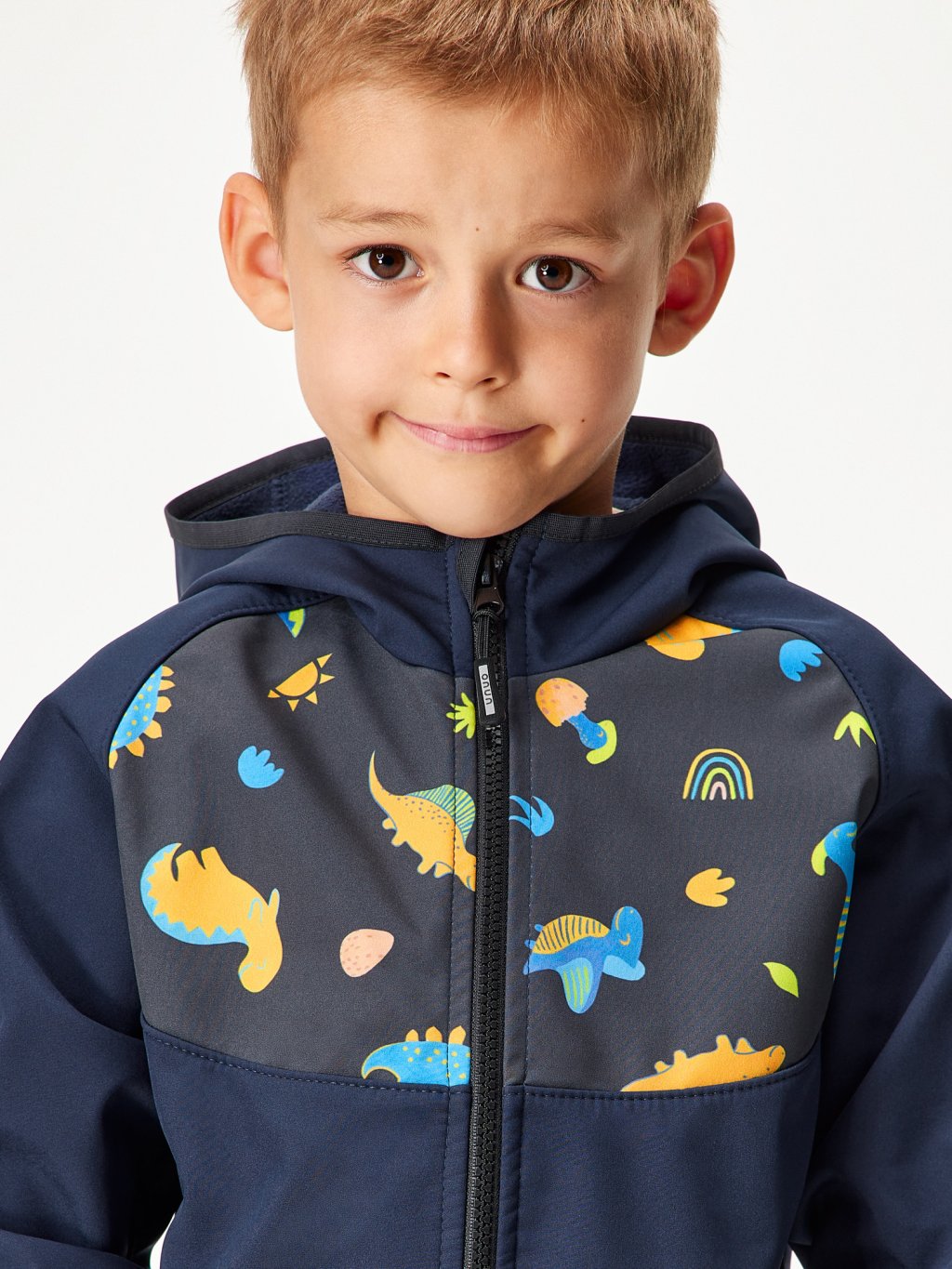 Dziecięca kurtka softshell z polarem Basic, Tm. Niebiesko-czarny, Dinozaury