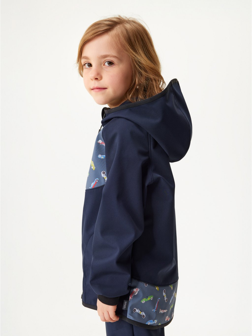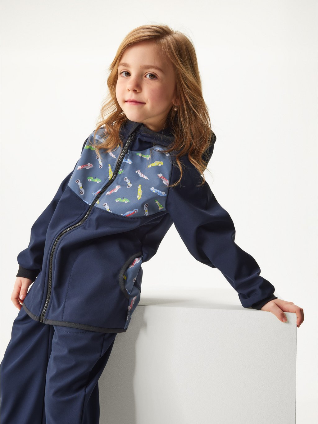 Dziecięca kurtka softshell z polarem Basic, Tm. Niebiesko-czarny, Samochody
