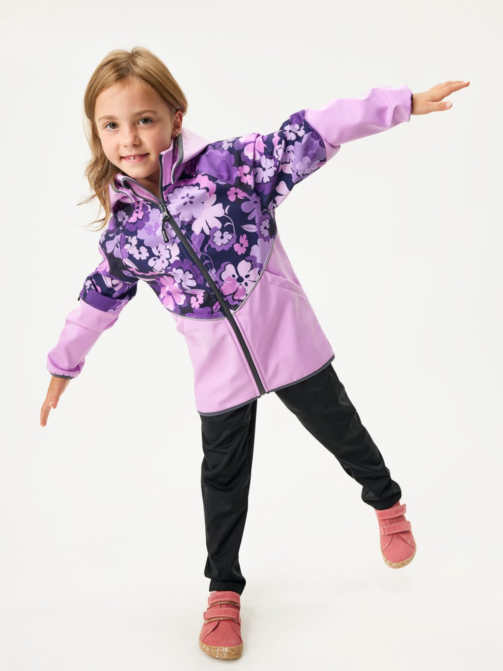 Dziecięca kurtka softshell z polarem Slim, Lila, Kwiaty