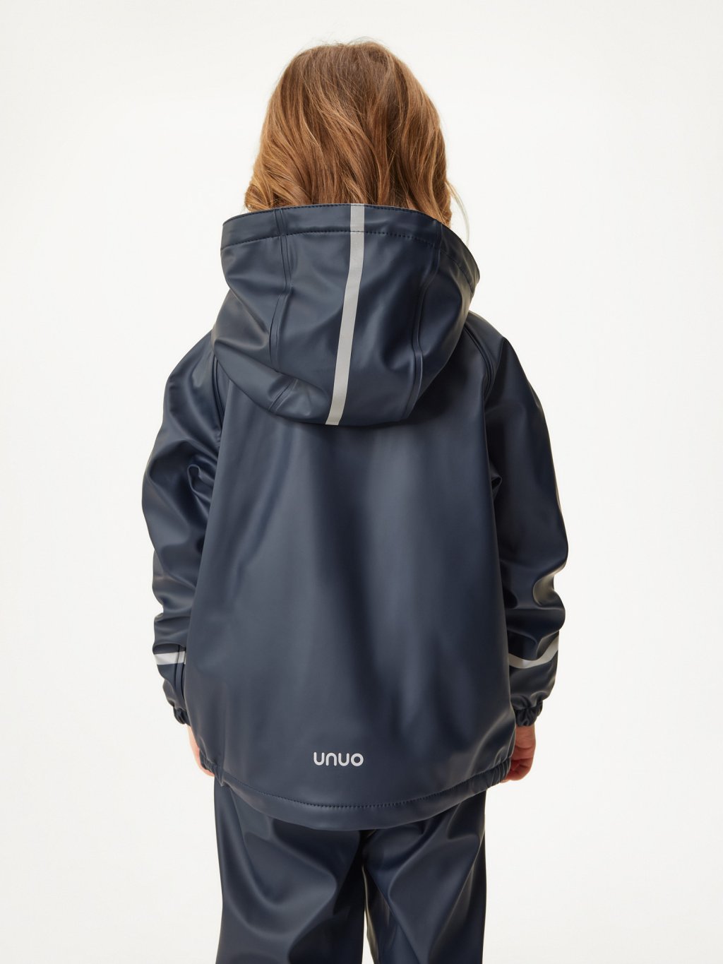 Deszcz, wiatr, kałuże i błoto? Żaden problem! Nasza dziecięca kurtka wodoodporna z polarem to idealny wybór dla małych poszukiwaczy przygód, którym niestraszna żadna pogoda. Gumowany materiał z trwałymi, uszczelnionymi szwami gwarantuje, że żadna kropla wody nie przedostanie się do środka, a miękki polar wewnątrz zapewni przytulne ciepło nawet w chłodniejsze dni. Kurtka posiada poręczny kaptur, który chroni głowę przed deszczem i wiatrem, dzięki czemu dzieci pozostaną suche i wygodne nawet w niesprzyjającej pogodzie. Dzięki elastycznym ściągaczom w pasie, rękawach i kapturze, kurtka idealnie dopasowuje się do ciała i zapobiega przemoczeniu. Elementy odblaskowe na rękawach, kapturze i plecach zwiększają bezpieczeństwo dzieci w warunkach słabej widoczności. Zapięcia na suwak i zatrzaski z logo unuo ułatwiają zakładanie, a poręczne kieszenie na małe skarby są zapinane na zatrzaski, aby nic nie wypadło. Dzięki tej kurtce dzieci mogą cieszyć się każdą przygodą na świeżym powietrzu, niezależnie od tego, czy zdecydują się skakać po kałużach, czy odkrywać leśne ścieżki! Wodoodporna kolekcja została zaprojektowana w Czechach i uszyta przez międzynarodową szwalnię.