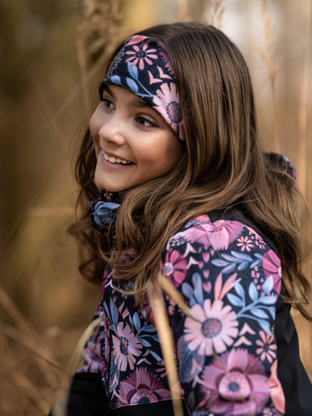 Dziecięca opaska na głowę z polaru Elise, Magiczne kwiaty