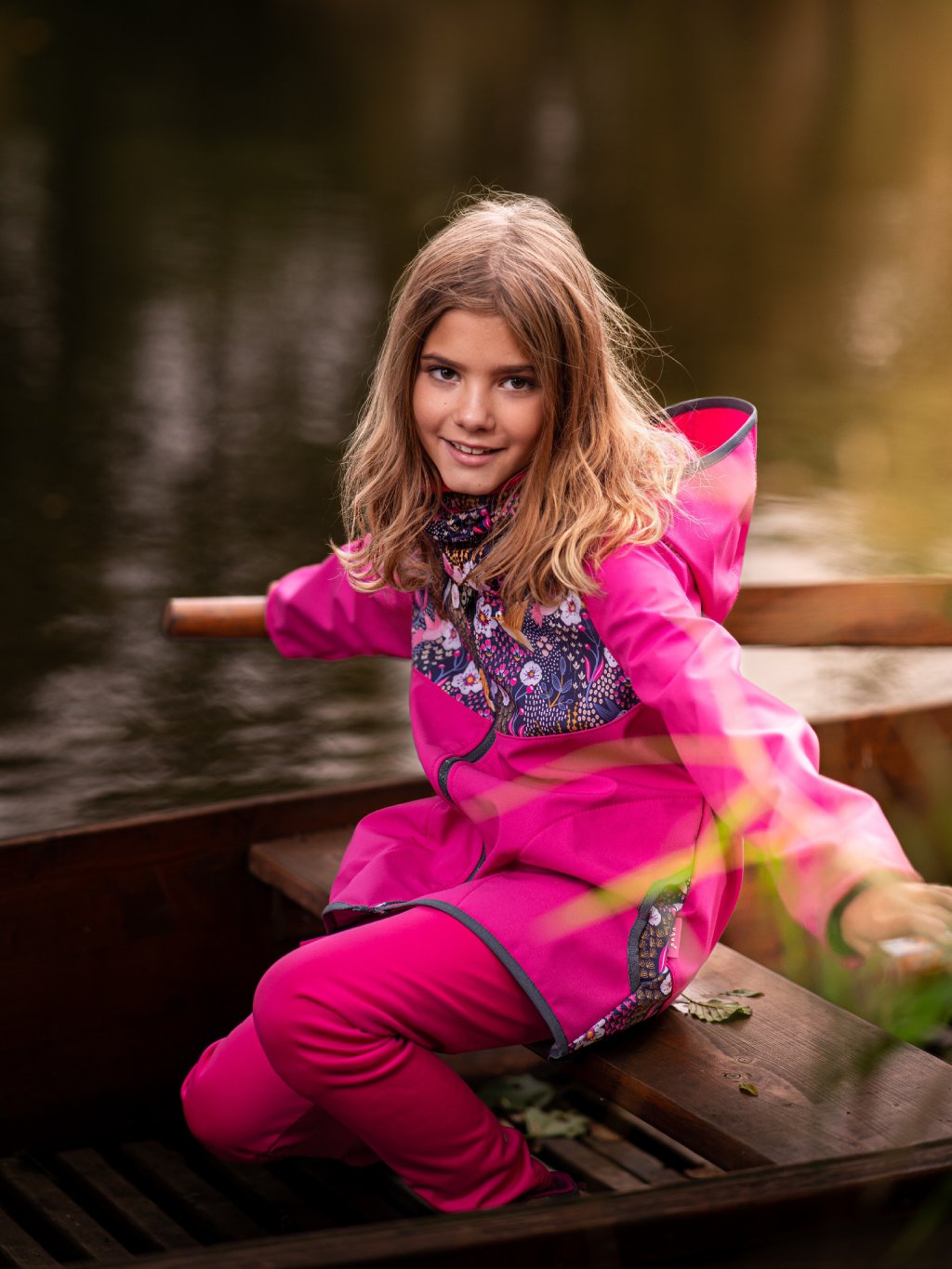 Dziecięce spodnie softshellowe bez ocieplenia, elastyczne Fantasy, Fuksja