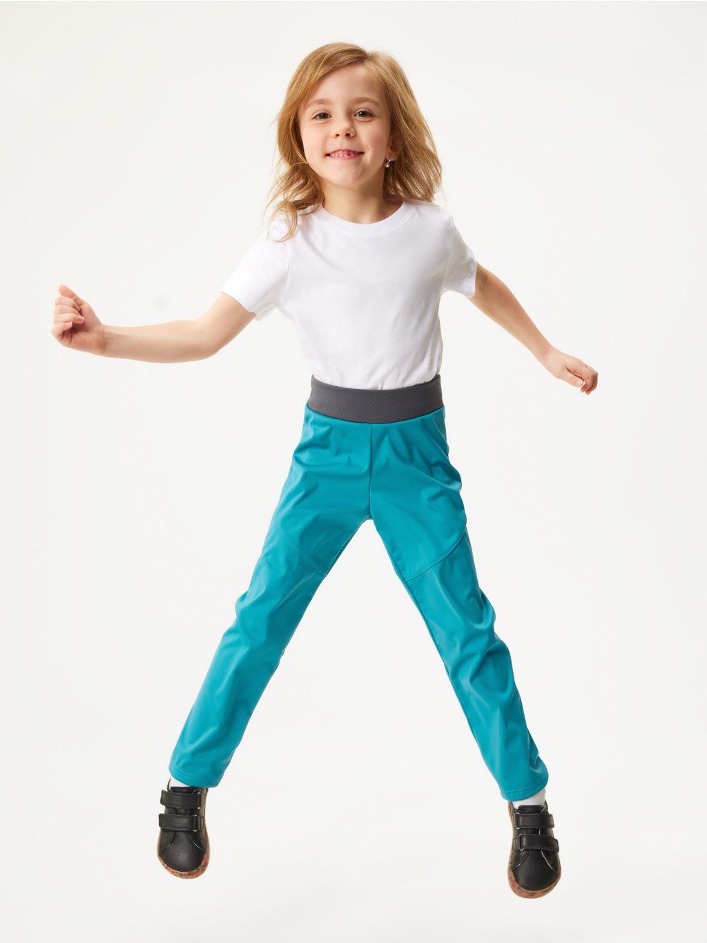 Dziecięce spodnie softshellowe bez ocieplenia, elastyczne Sporty, Szmaragd