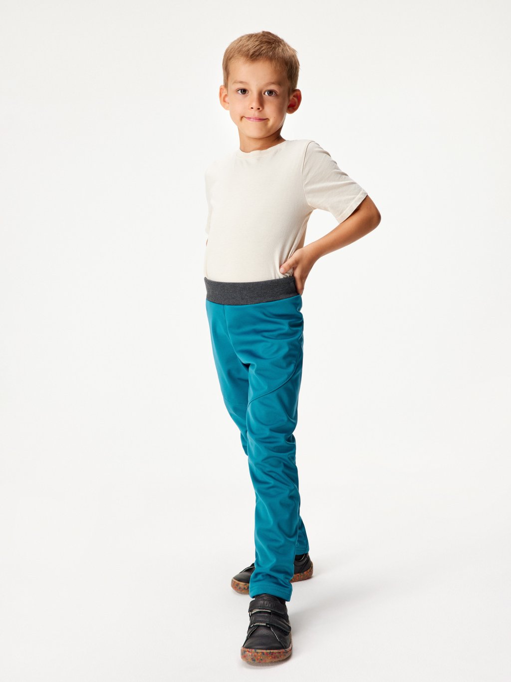 Ten softshell jest jak delikatna dusza - wraliwy na cieranie. Ale chroni rwnie przed warunkami atmosferycznymi i zapewnia maksymalny komfort dziki swojej elastycznoci. Dziki zastosowanemu materiaowi spodnie softshell s mikkie, niezwykle wygodne i piknie elastyczne. Nie jest to po prostu tkanina, ale dzianina, ktra ma mniejsz odporno na cieranie, dlatego szyjemy j tylko dla duych dziewczynek i chopcw, ktrzy nie potrzebuj ju podkolanwek do chodzenia.