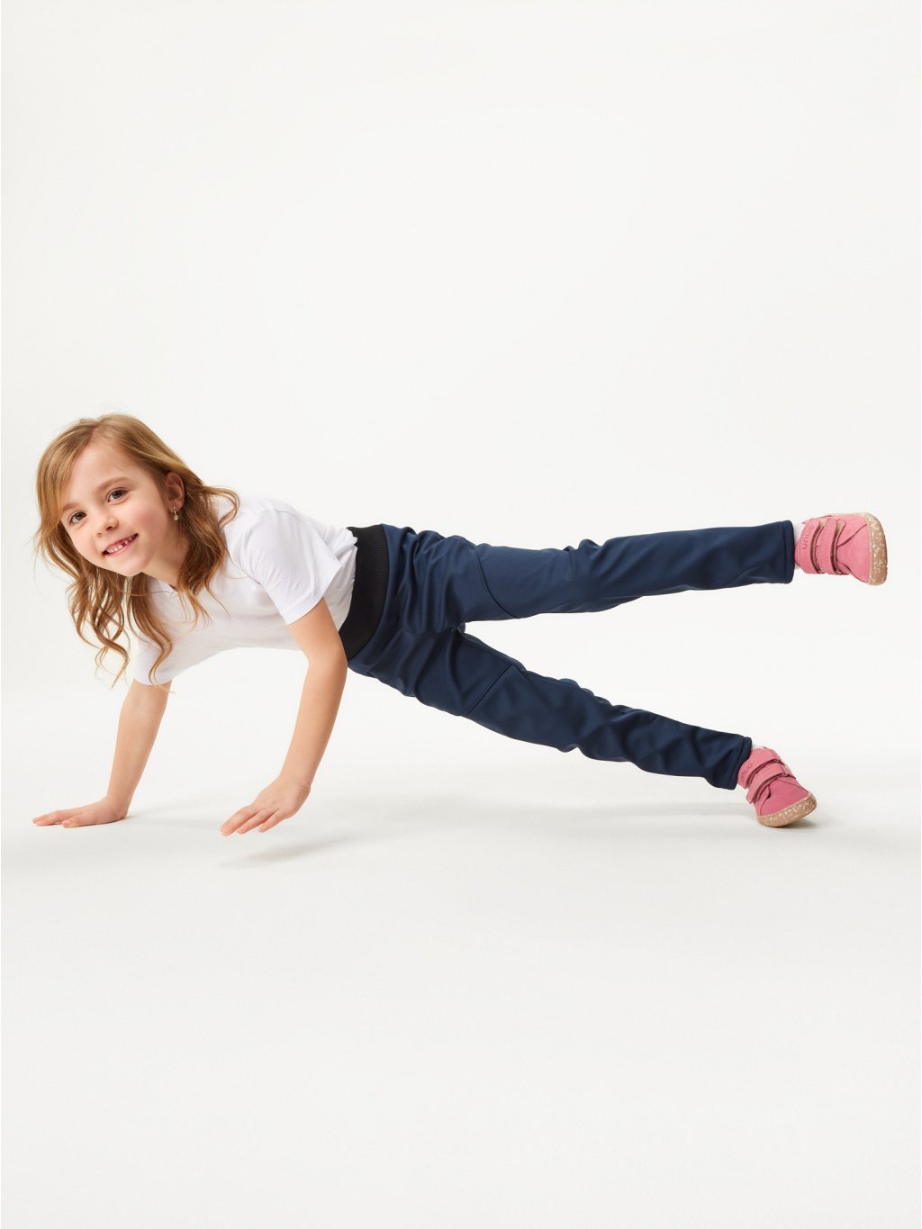 Ten softshell jest jak delikatna dusza - wraliwy na cieranie. Ale chroni rwnie przed warunkami atmosferycznymi i zapewnia maksymalny komfort dziki swojej elastycznoci. Dziki zastosowanemu materiaowi spodnie softshell s mikkie, niezwykle wygodne i piknie elastyczne. Nie jest to po prostu tkanina, ale dzianina, ktra ma mniejsz odporno na cieranie, dlatego szyjemy j tylko dla duych dziewczynek i chopcw, ktrzy nie potrzebuj ju podkolanwek do chodzenia.
