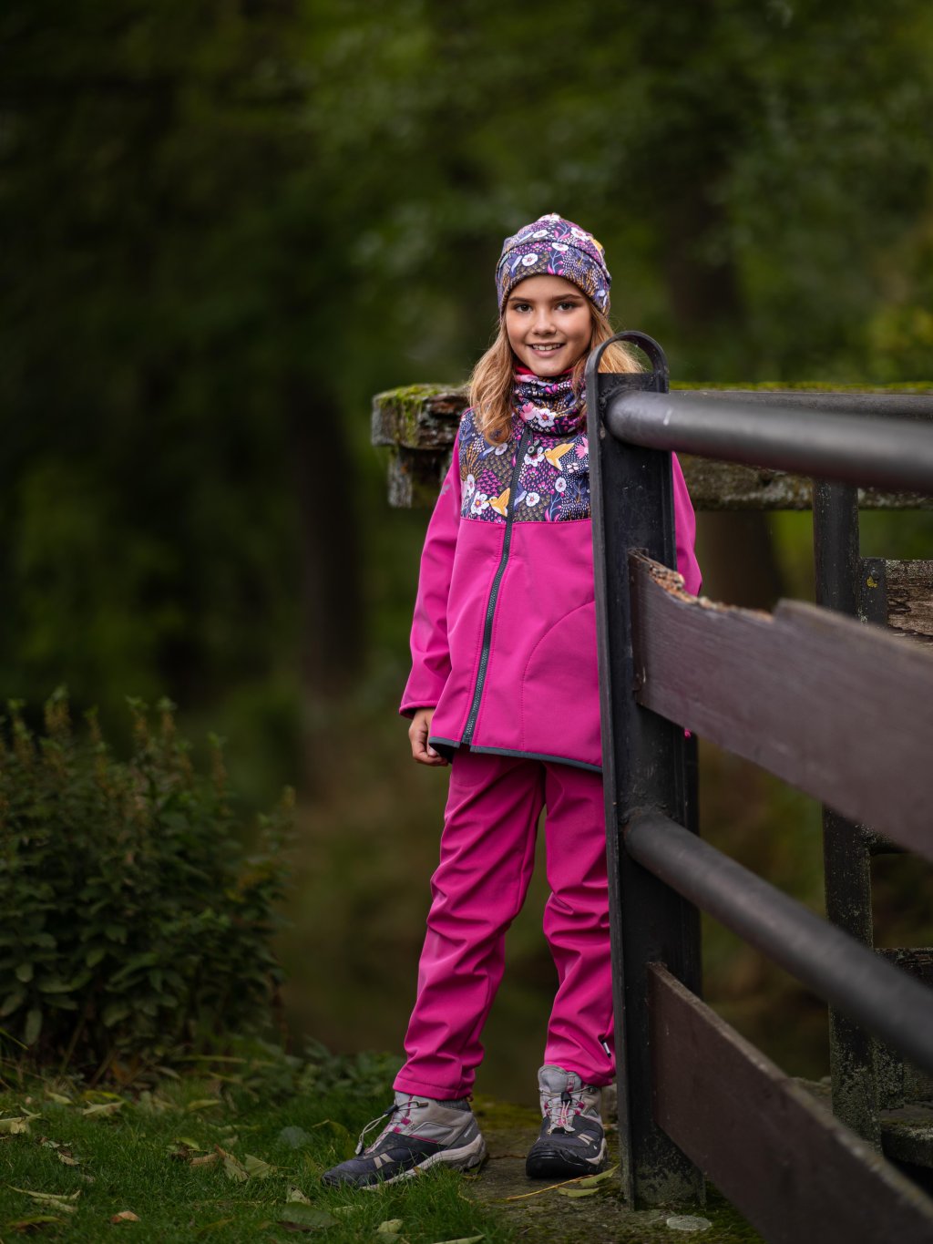 Dziecięce spodnie softshellowe z polarem Basic, Fuksja