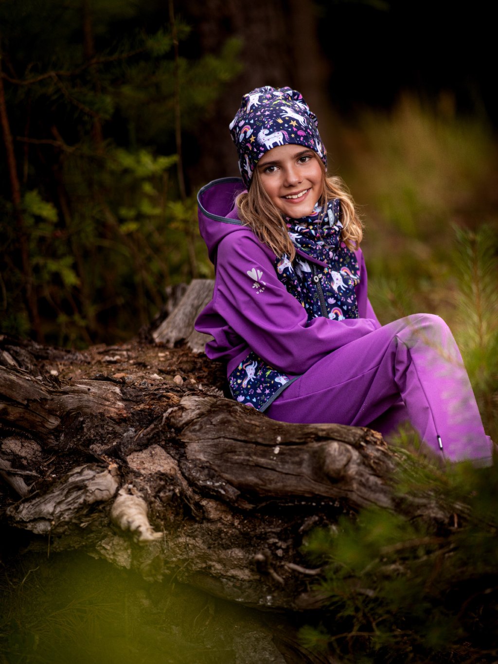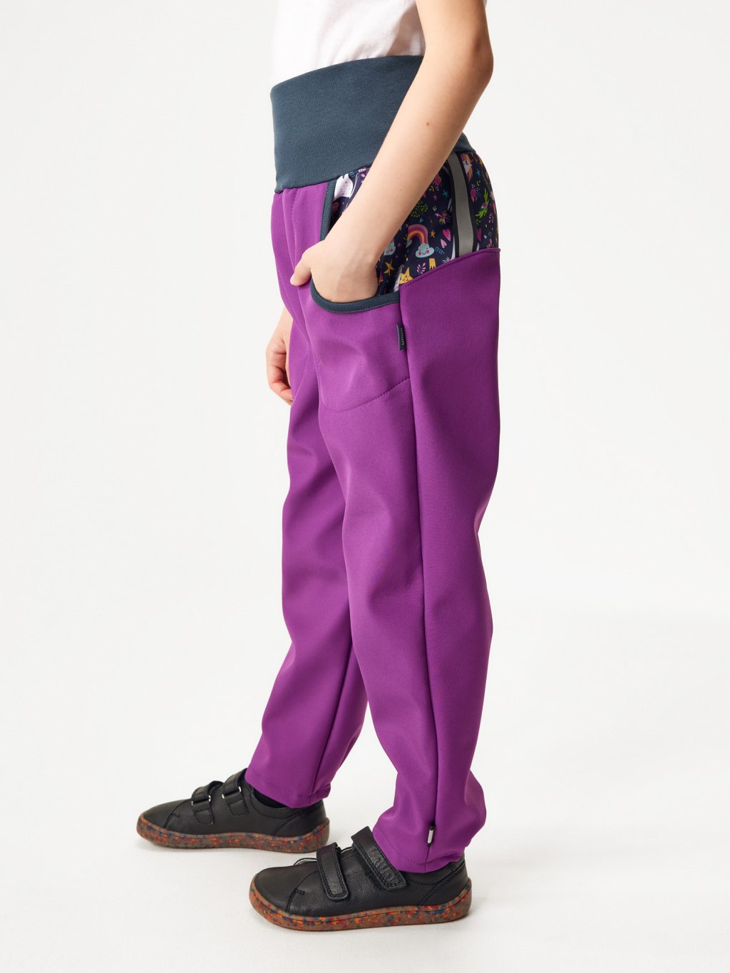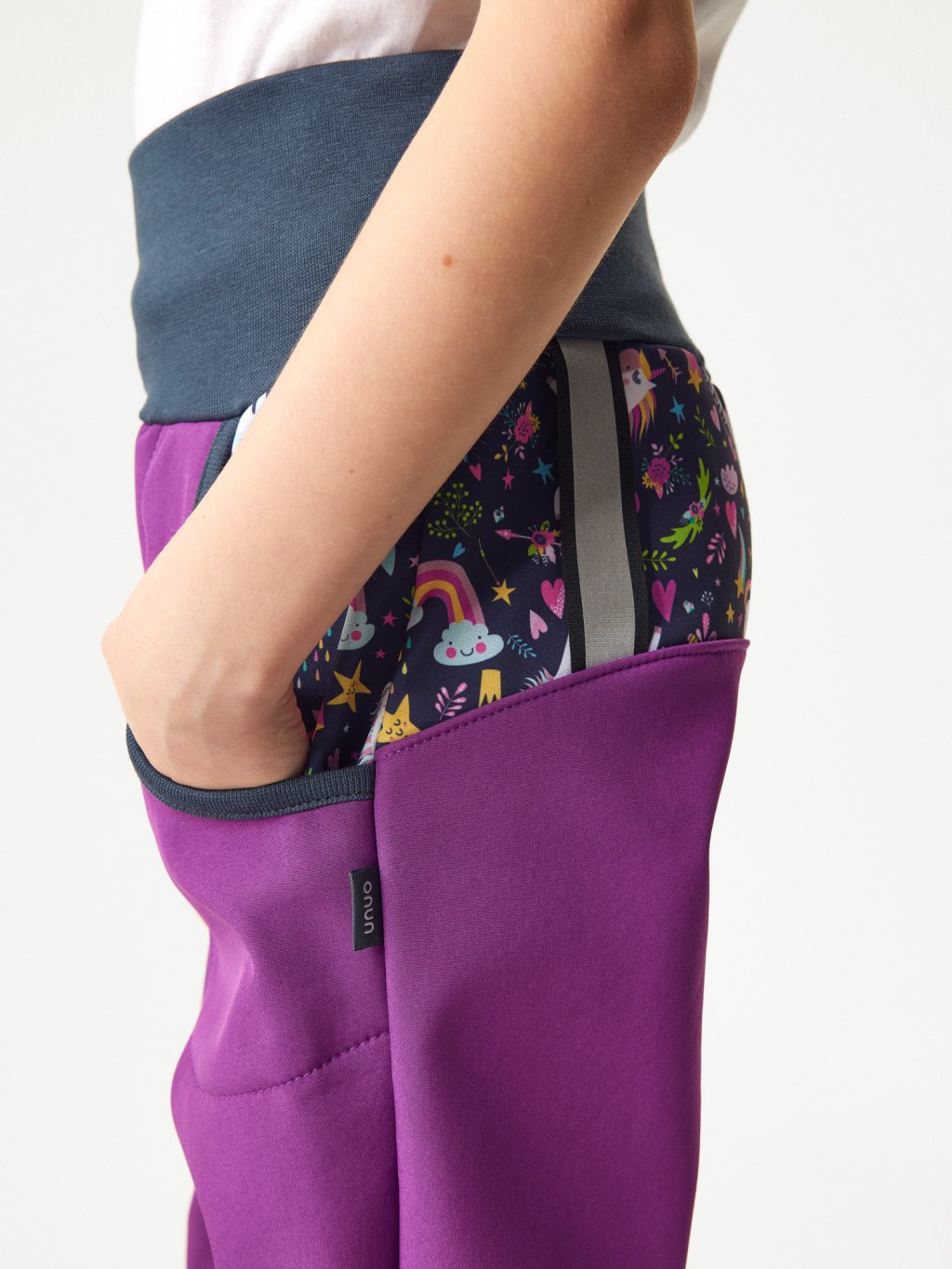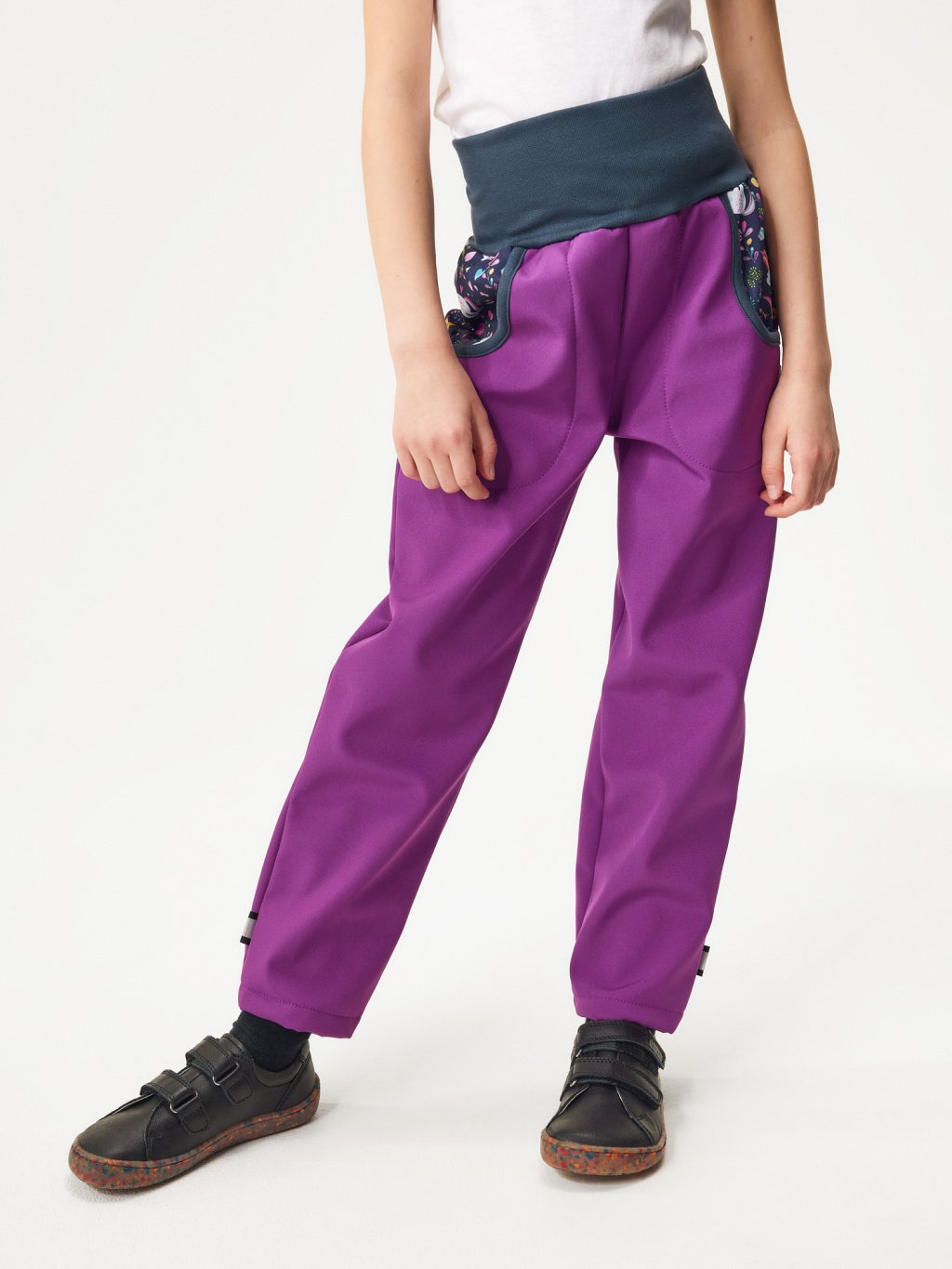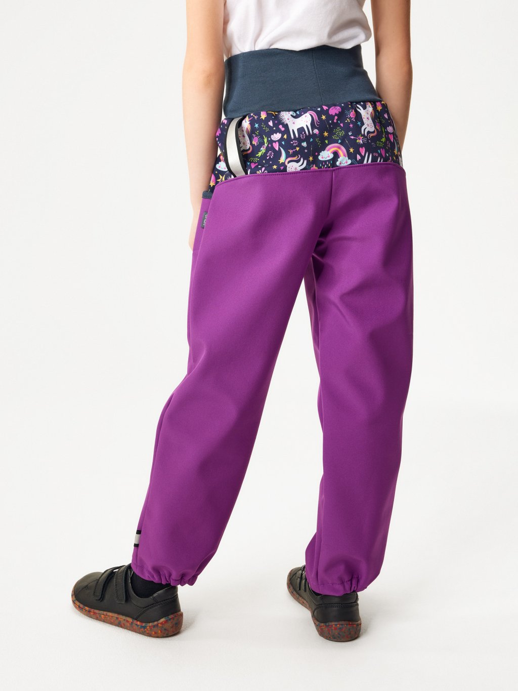 Dziecięce spodnie softshellowe z polarem Basic, Jeżyna, Jednorożce