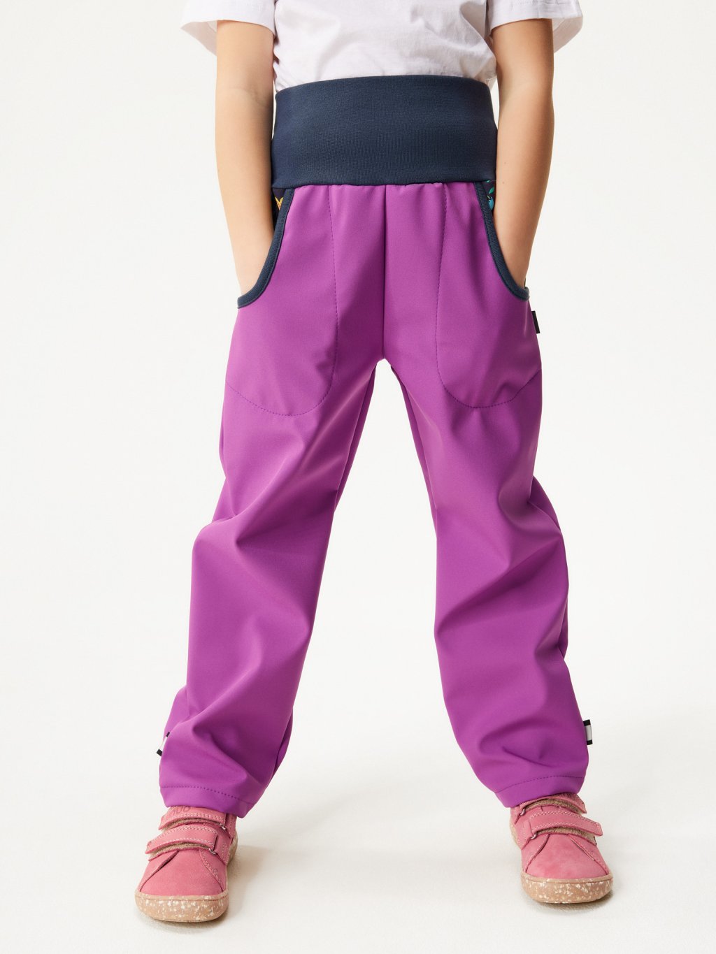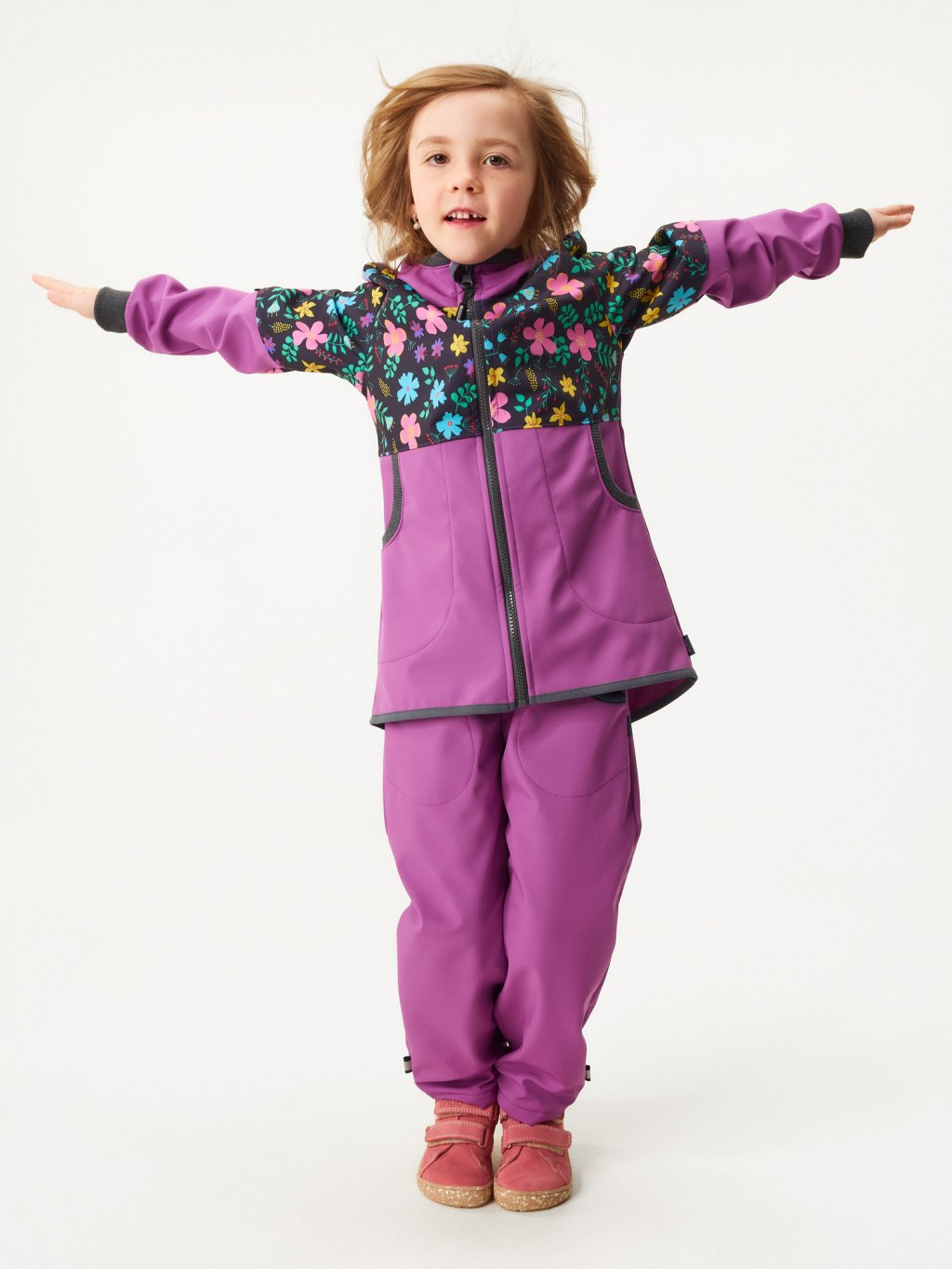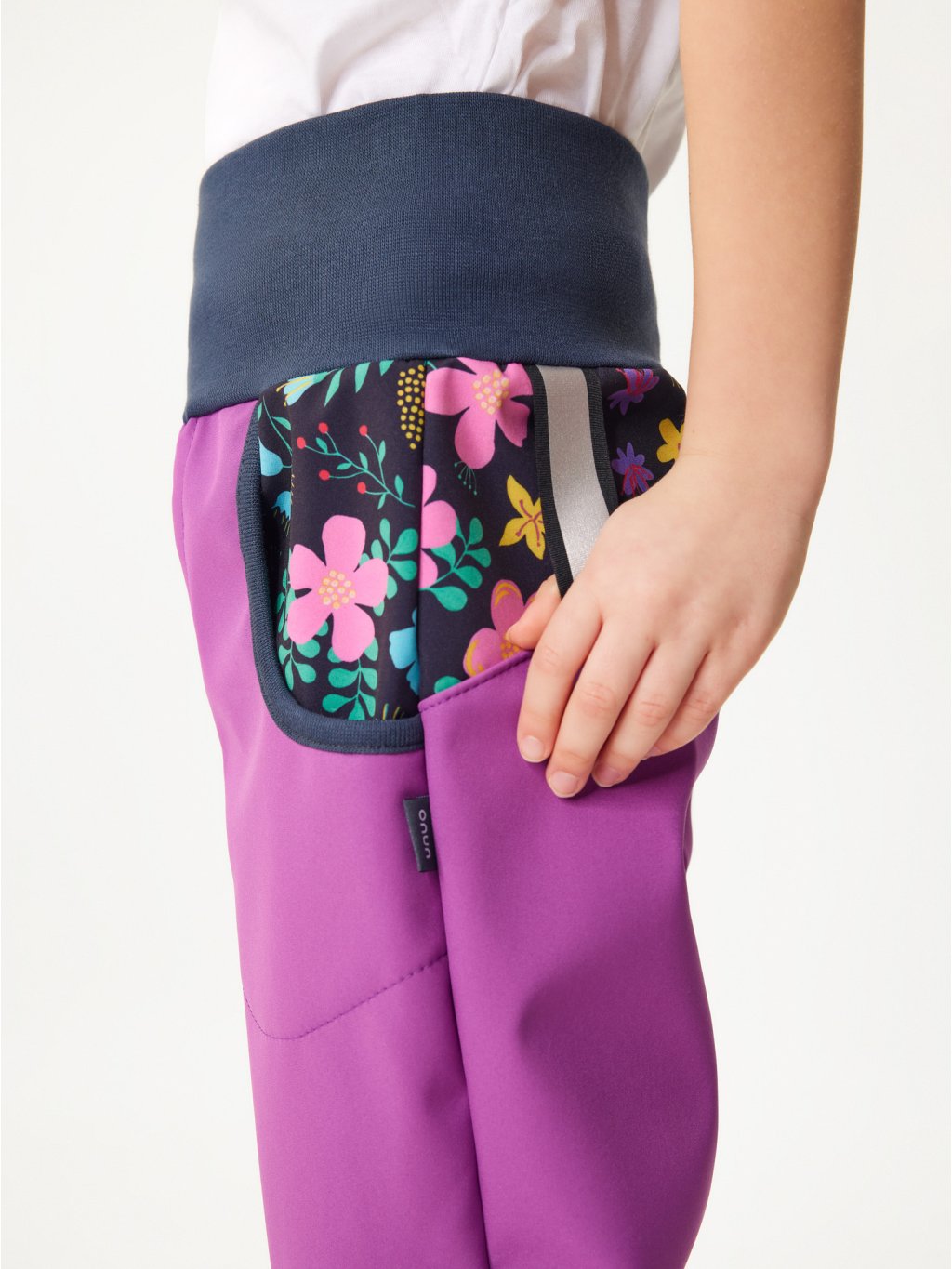 Dziecięce spodnie softshellowe z polarem Basic, Jeżyna, Kwiaty