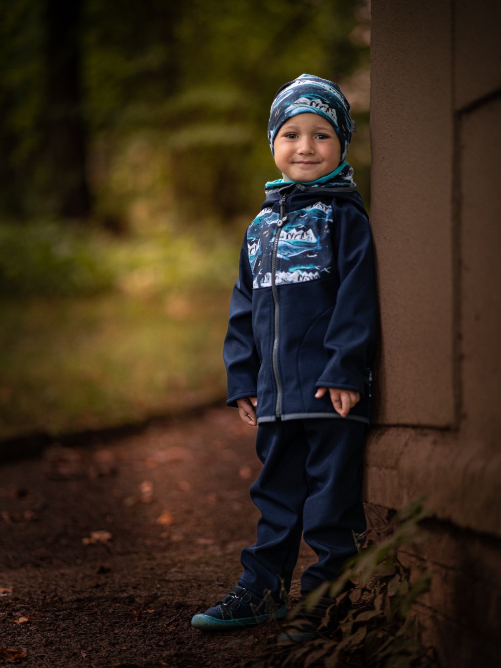 Dziecięce spodnie softshellowe z polarem Basic, Tm. Niebiesko-czarny