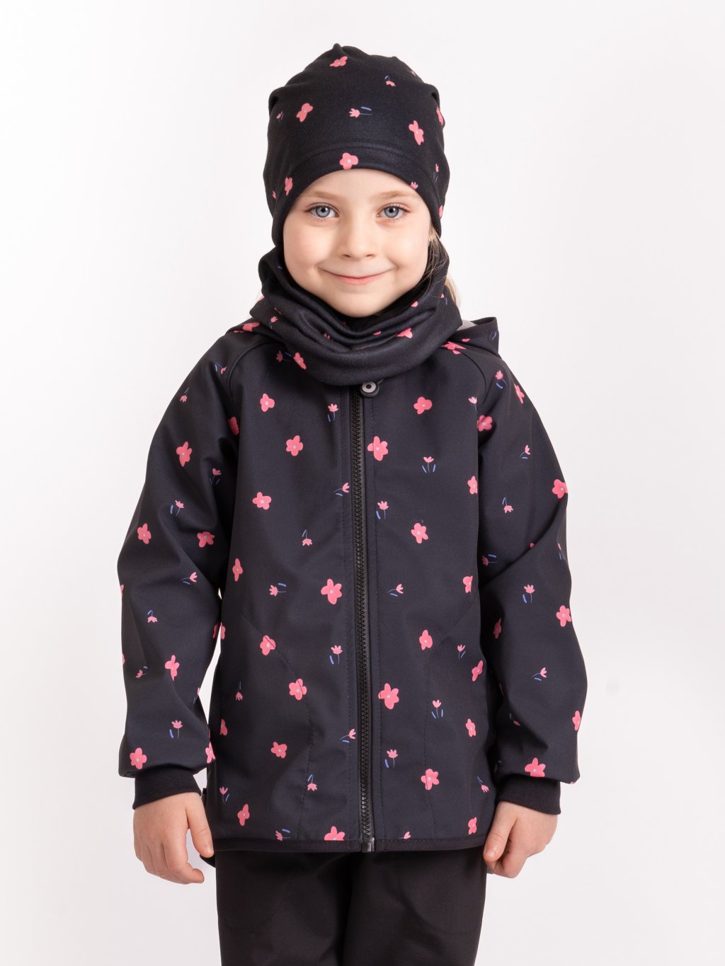 Dziecięcy polarowy ocieplacz na szyję Basic, Czarny, Kwiaty