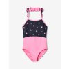 Dziewczęcy jednoczęściowy strój kąpielowy z ochroną UV 50, Różowy, Kwiaty