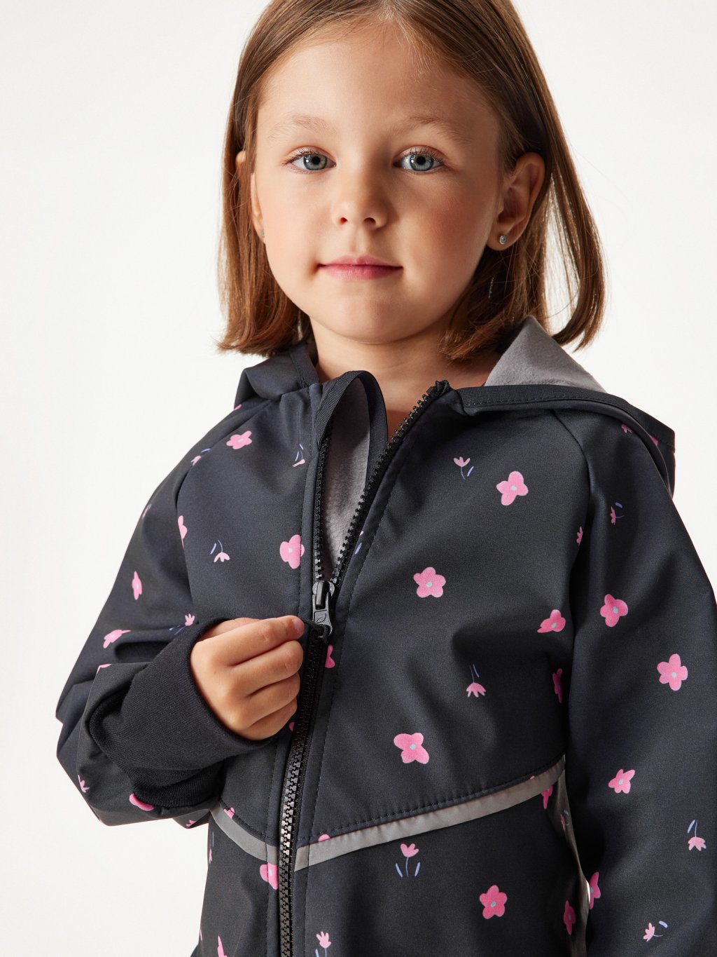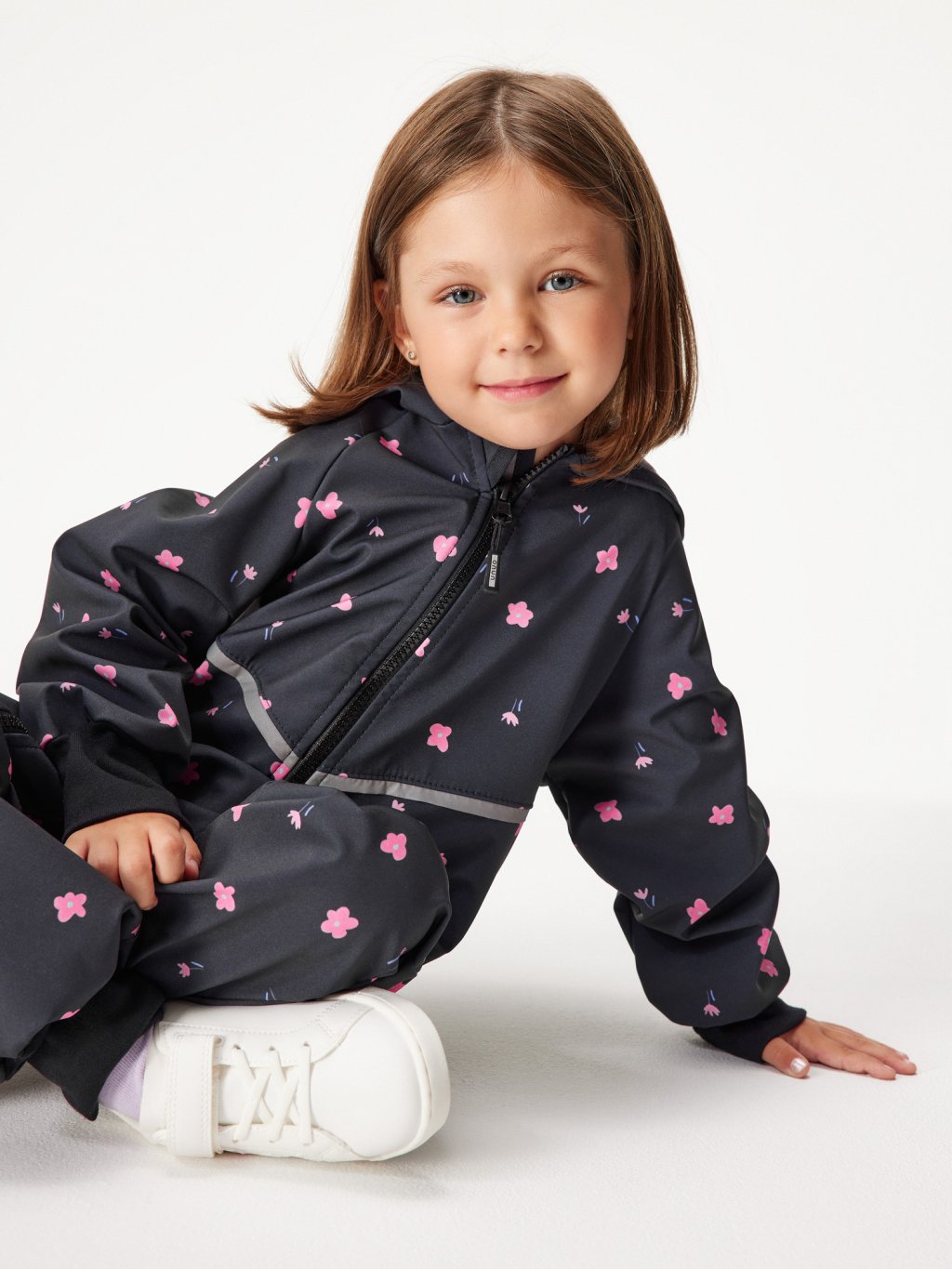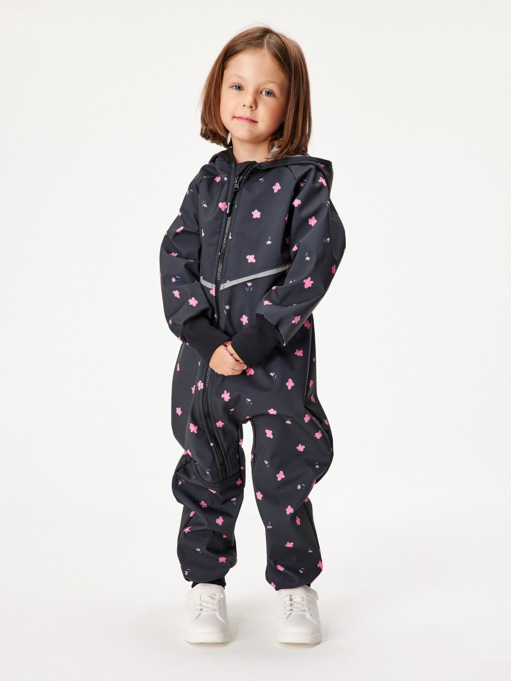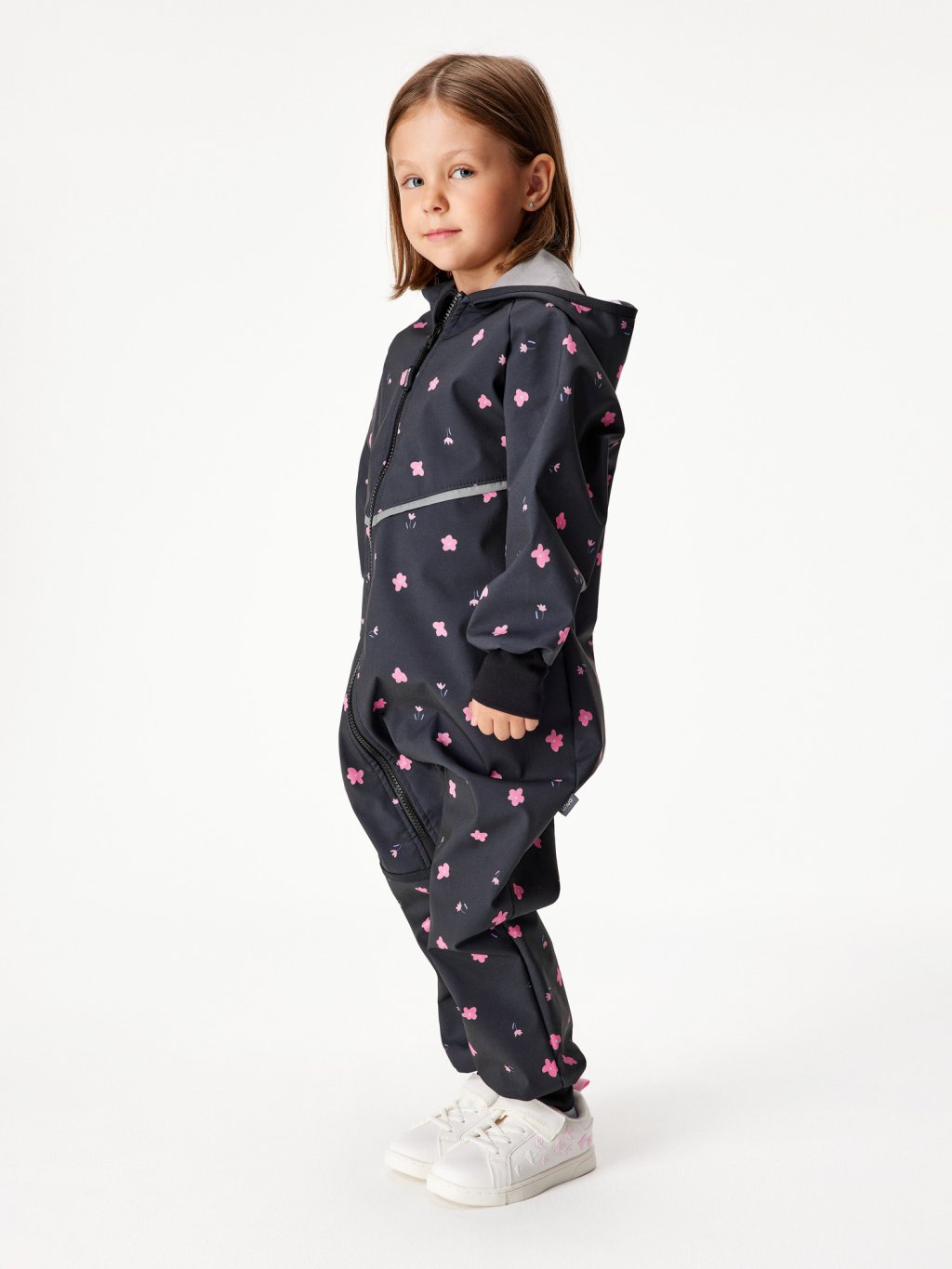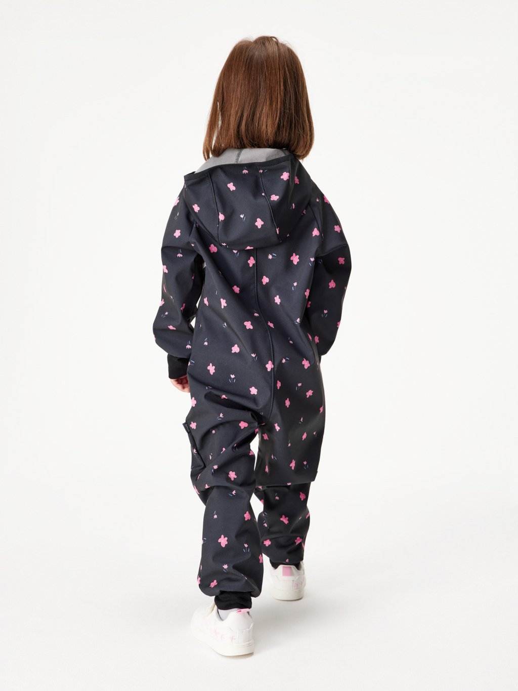 Kombinezon softshellowy dla malucha z polarem Mini, Czarny, Kwiaty