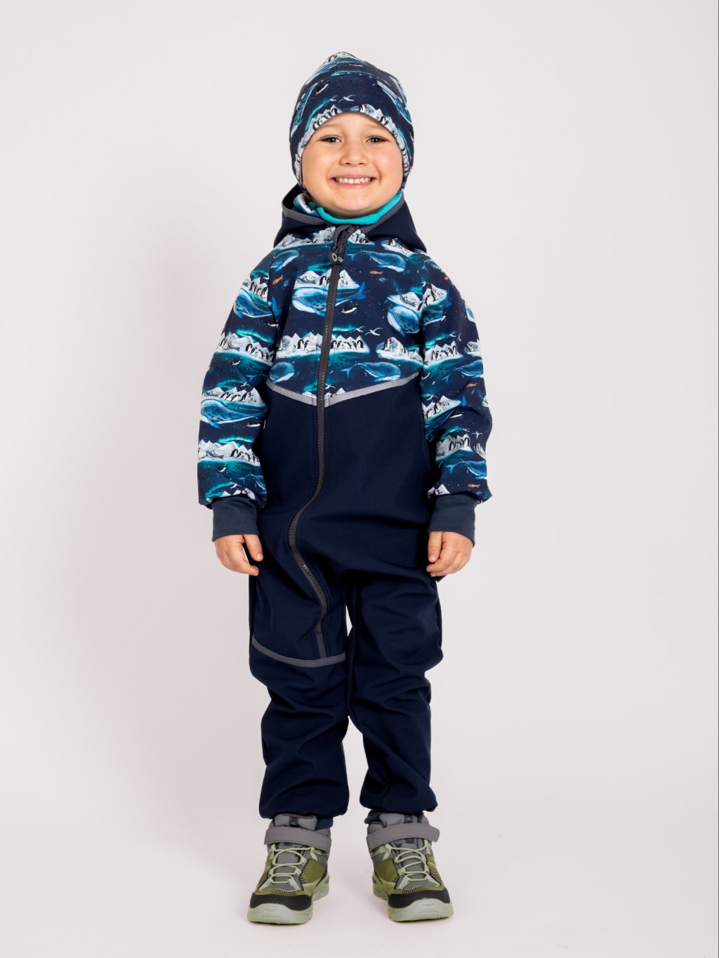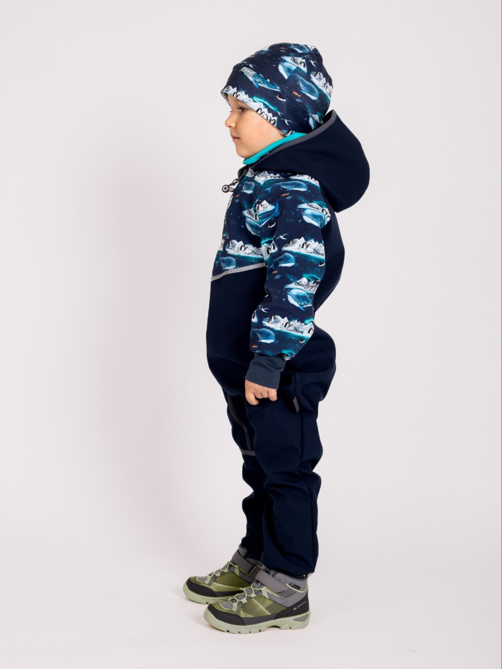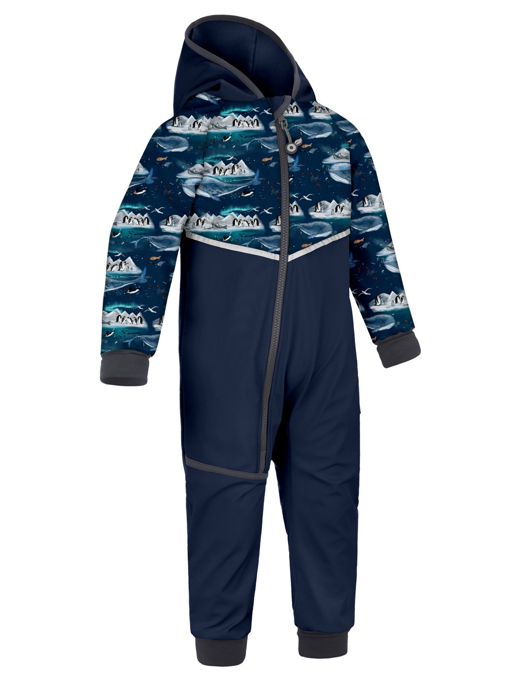 Kombinezon softshellowy dla malucha z polarem Mini, Tm. Niebiesko-czarny, Pingwiny