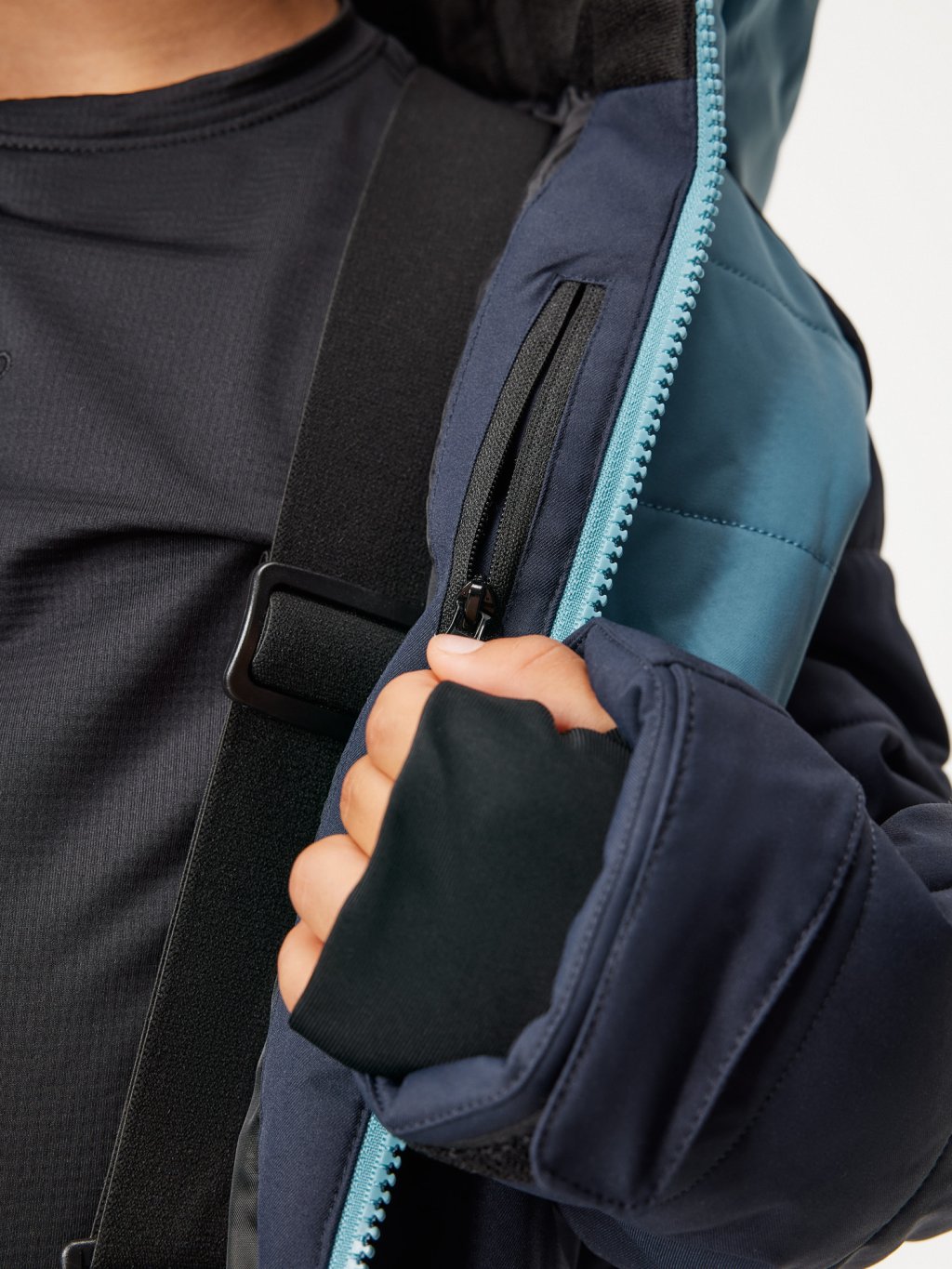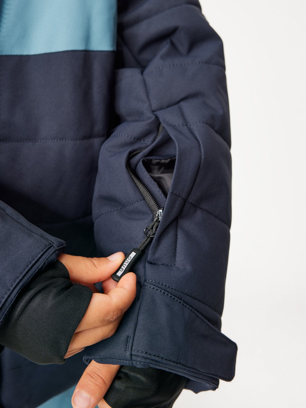 Stylowa, ciepła i odpowiednia także w góry. Ta kurtka narciarska wyposażona jest w pas śnieżny, który zapobiega przedostawaniu się śniegu nawet podczas największych zimowych przygód. Kurtka ma kilka praktycznych kieszeni na wszystkie skarby, w tym kieszeń na skipass. Mankiety na rękawach zapinane na rzep, ściągacze z otworem na kciuk oraz możliwość regulacji w pasie sprawiają, że kurtka świetnie leży i zatrzymuje ciepło. Bezpieczeństwo zwiększają elementy odblaskowe na plecach, rękawie i przy suwaku. Całość dopełniają napy z logo unuo. Kolekcja zimowa została zaprojektowana w Czechach i uszyta w zagranicznej szwalni.