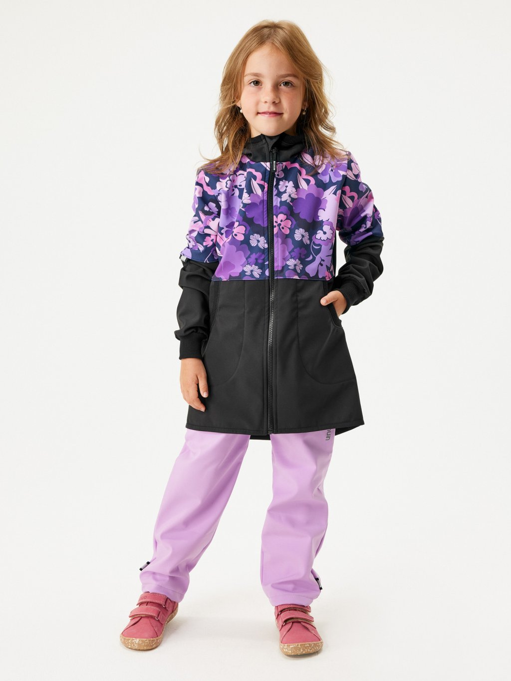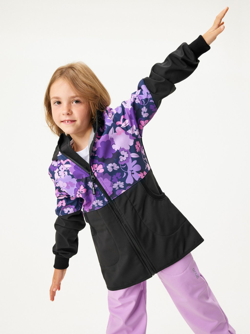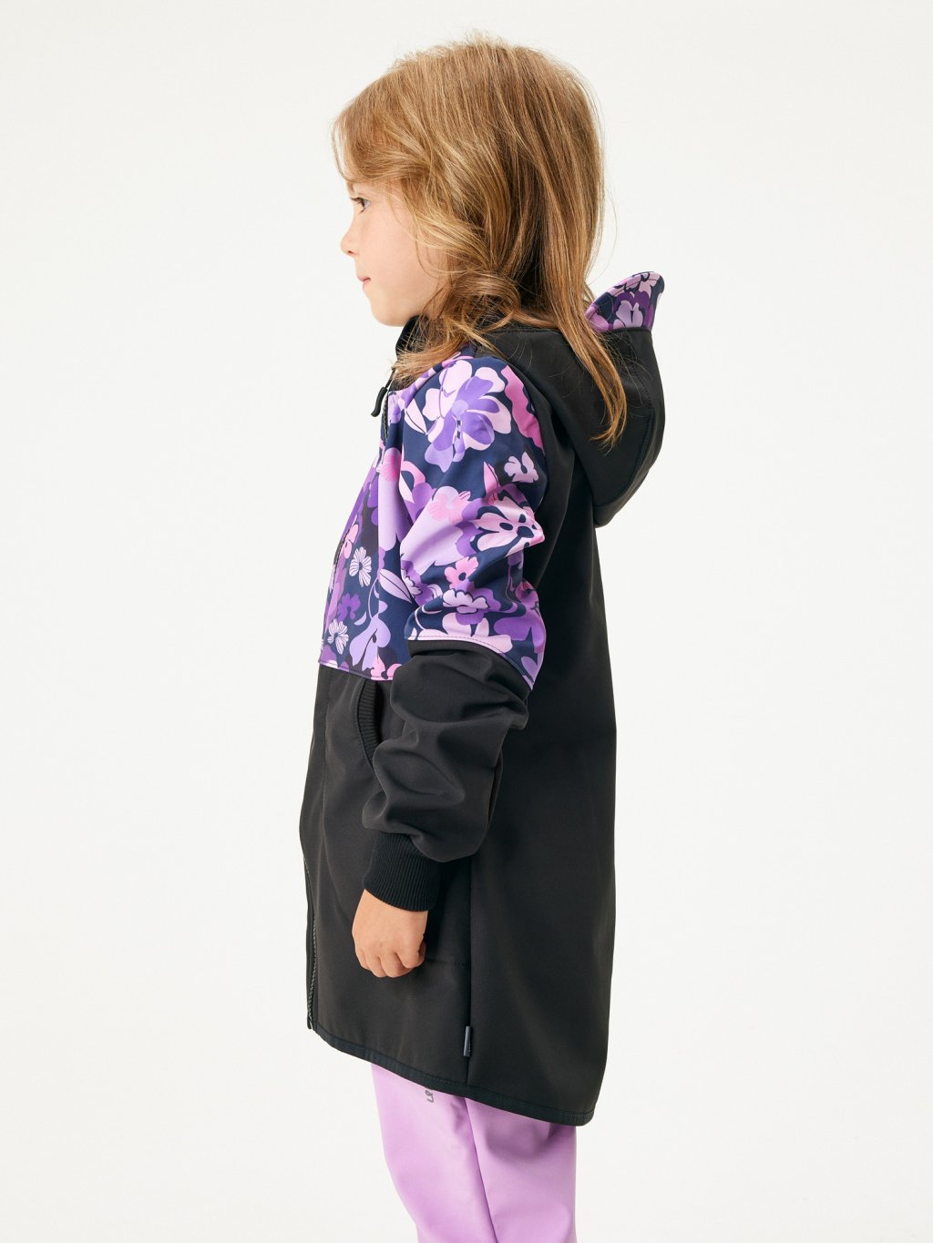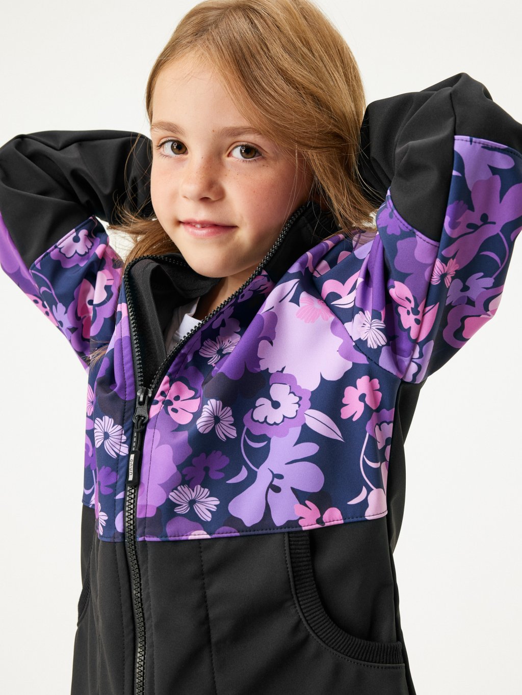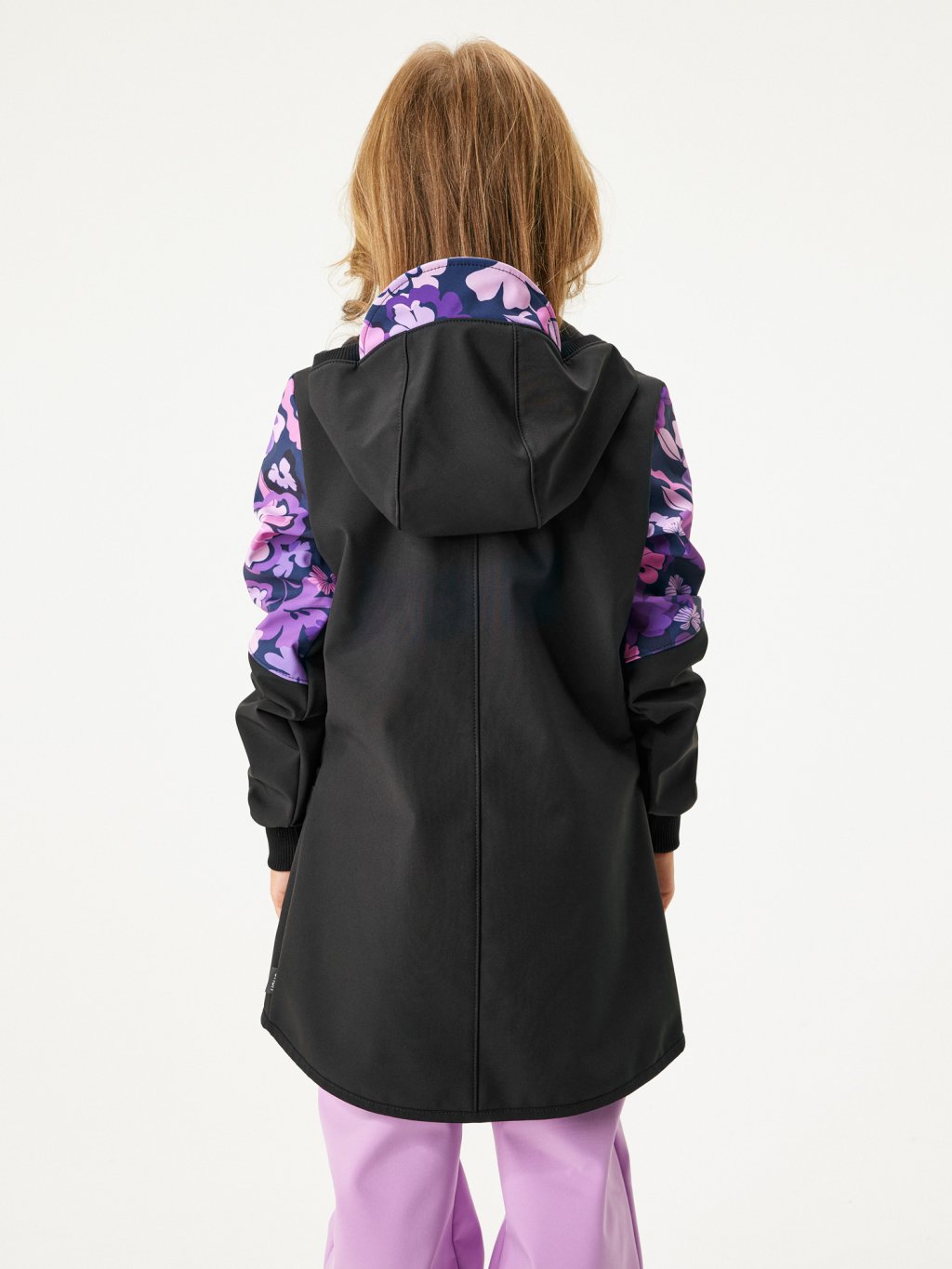 Płaszcz softshell dziewczęcy z polarem Street, Czarny, Kwiaty