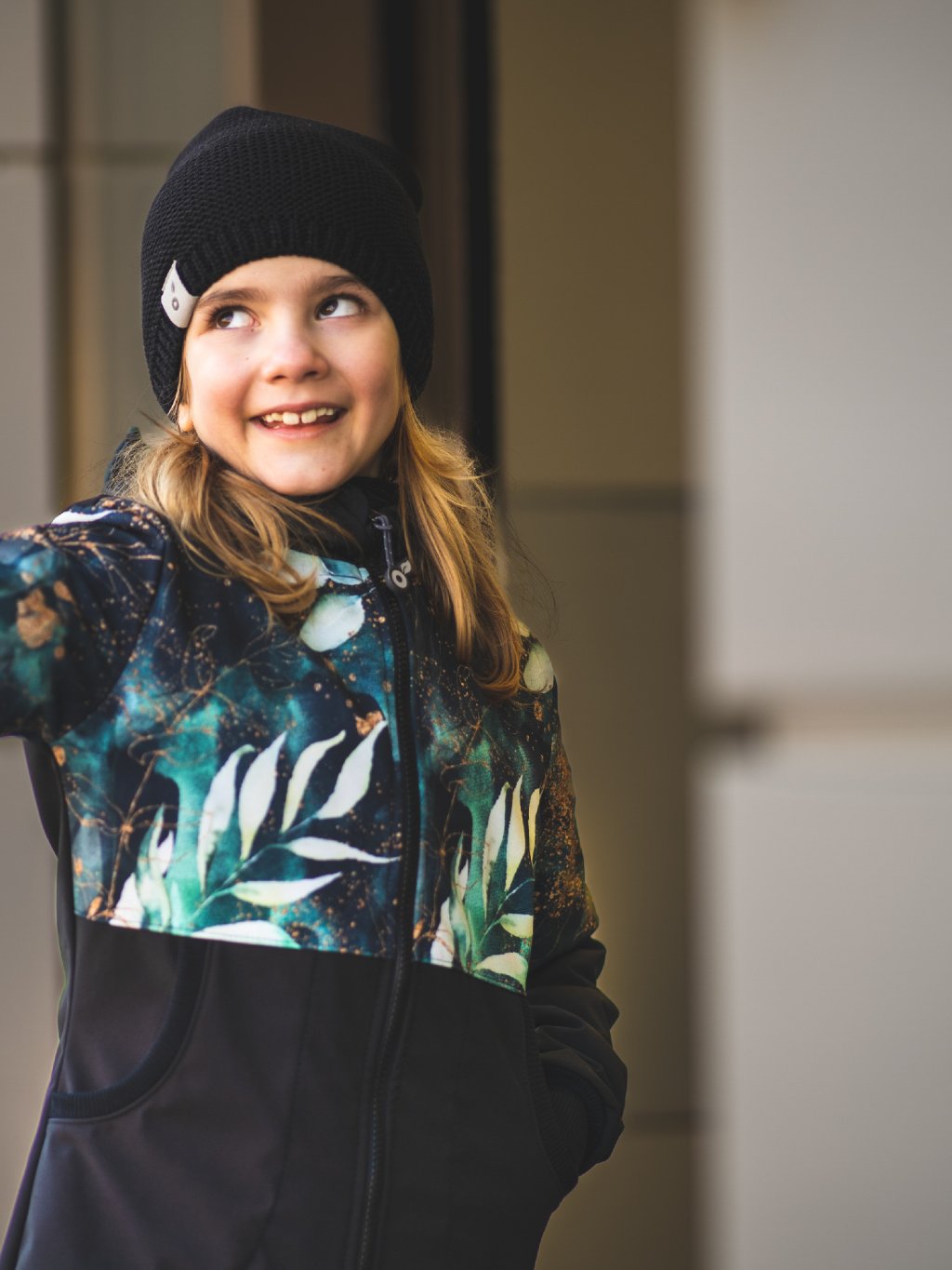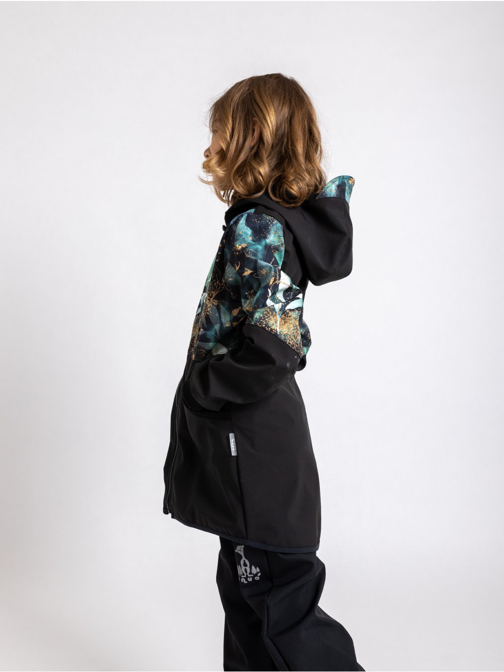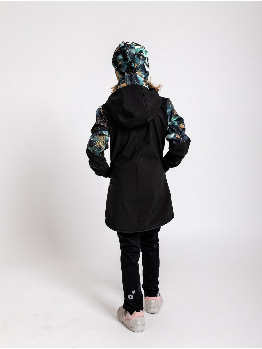 Płaszcz softshell dziewczęcy z polarem Street, Czarny, Liście i gałązki