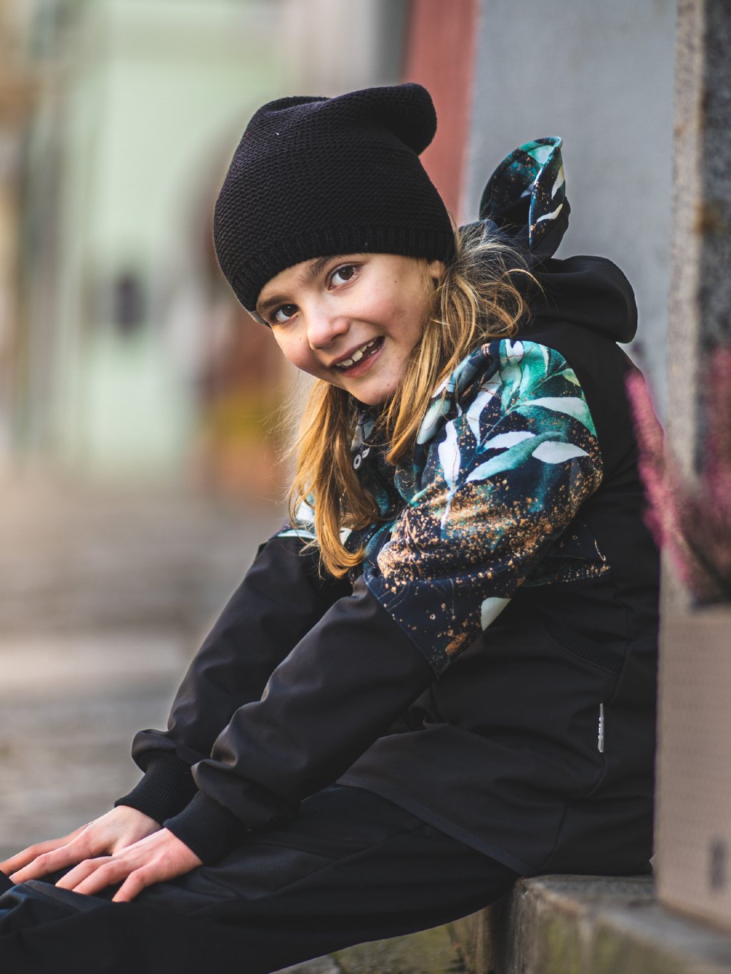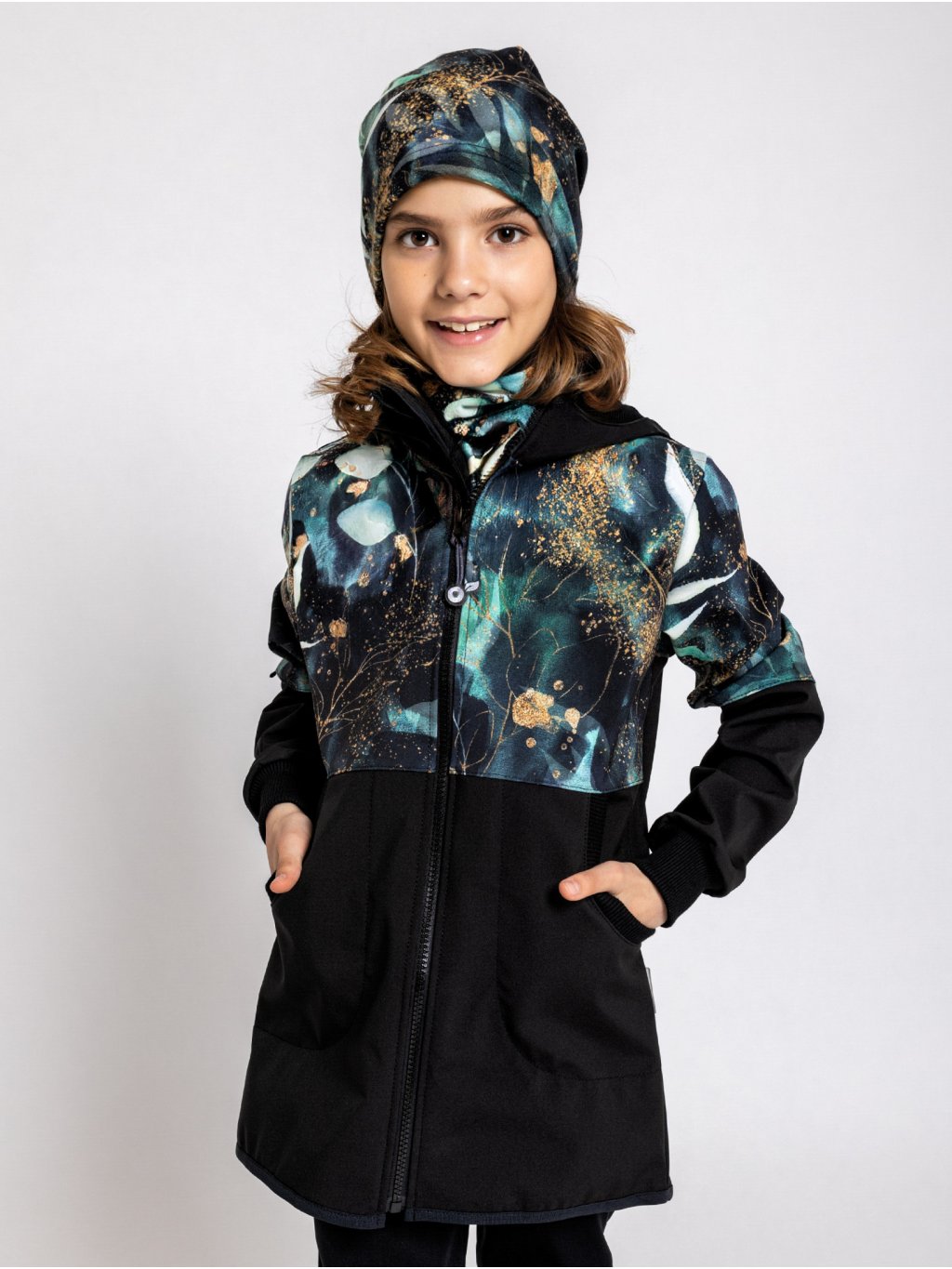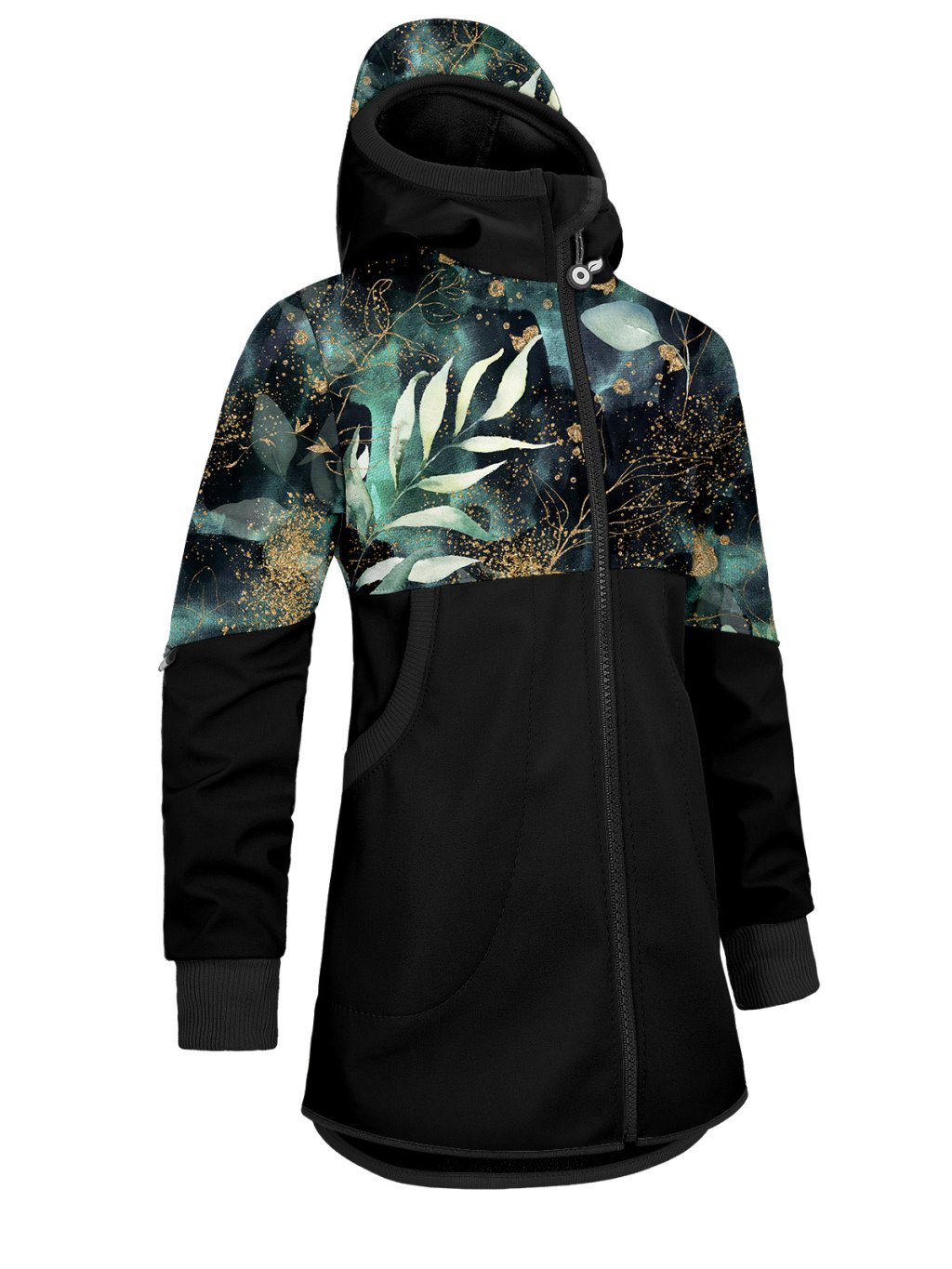 Płaszcz softshell dziewczęcy z polarem Street, Czarny, Liście i gałązki