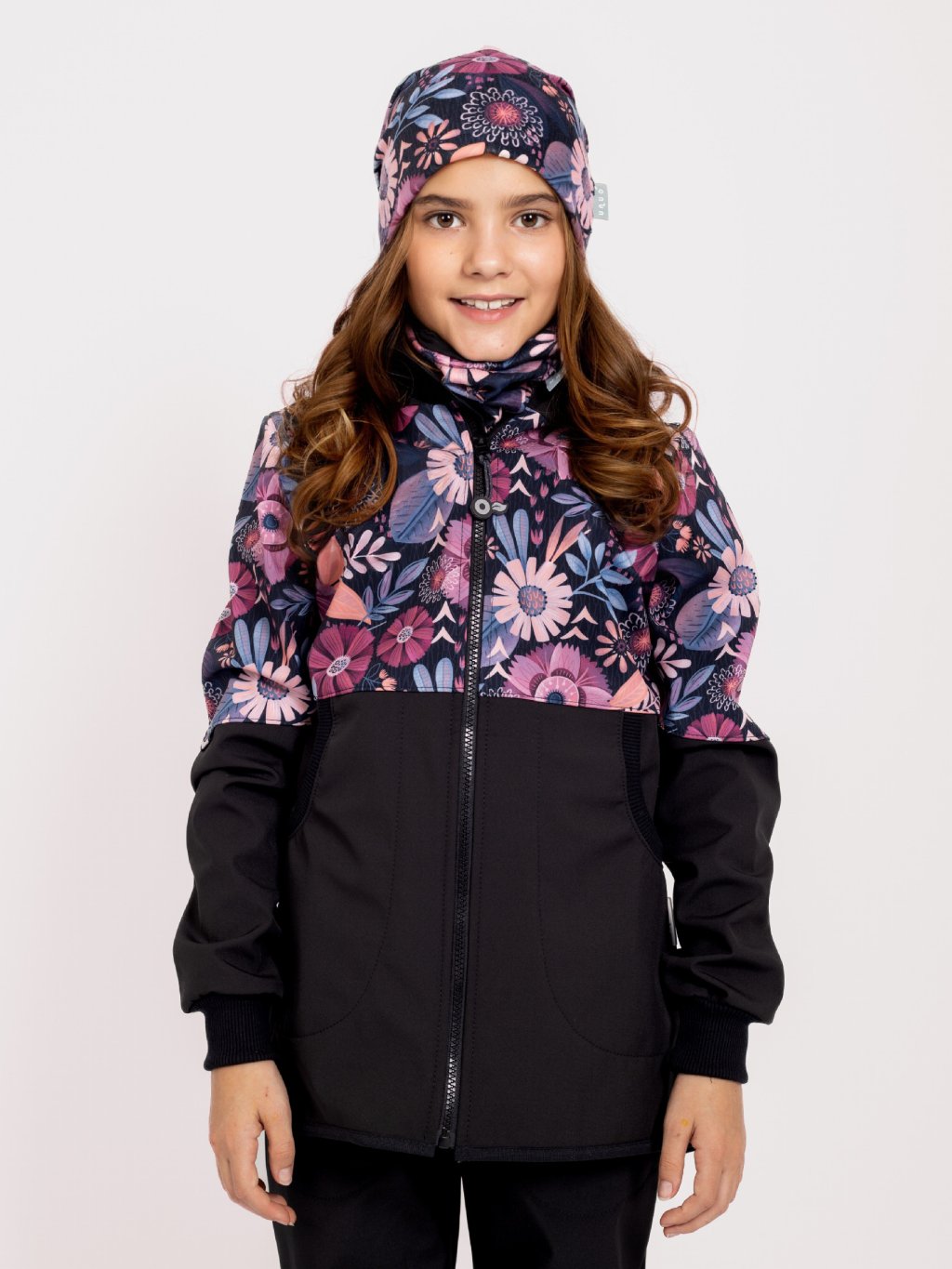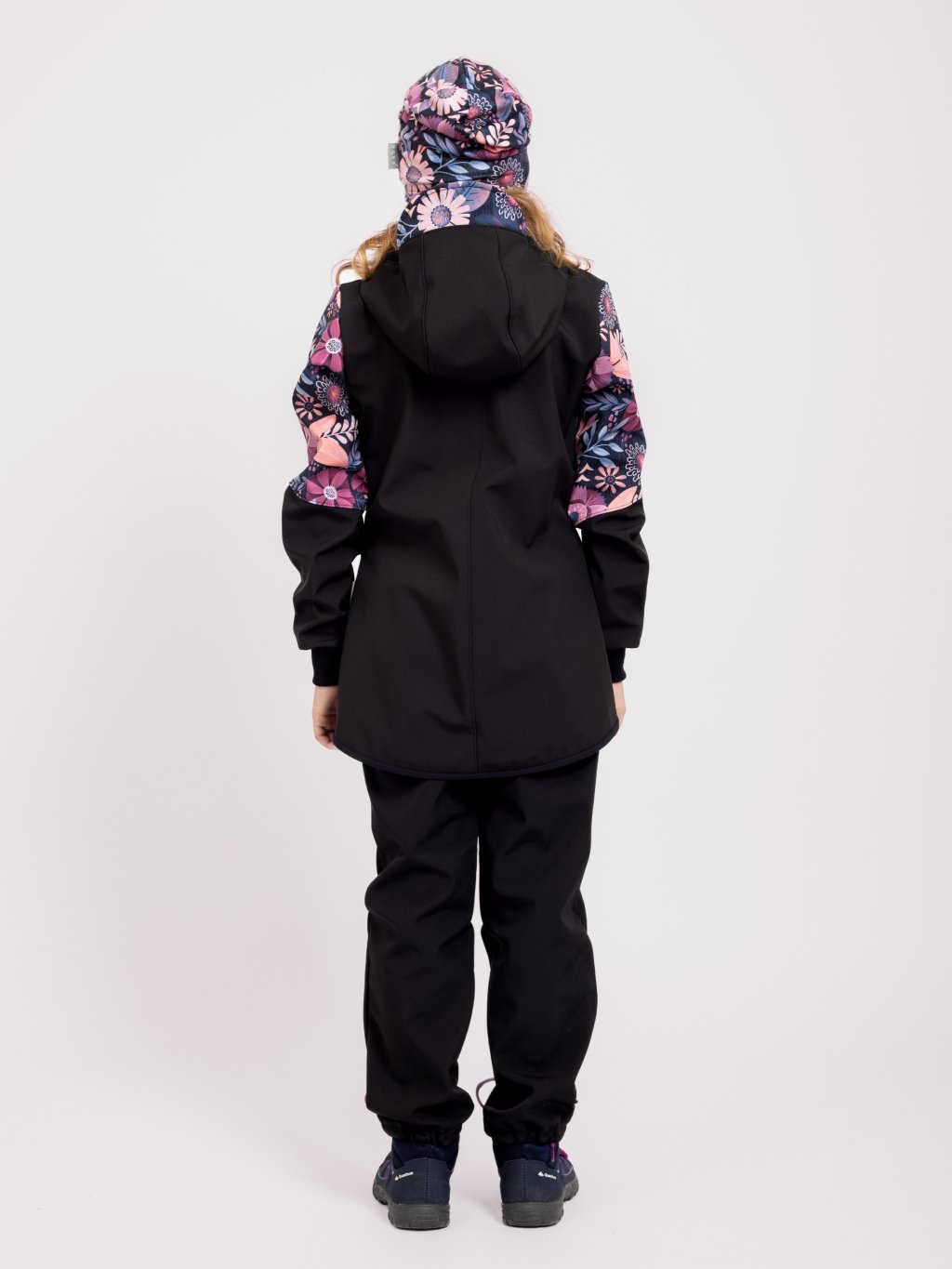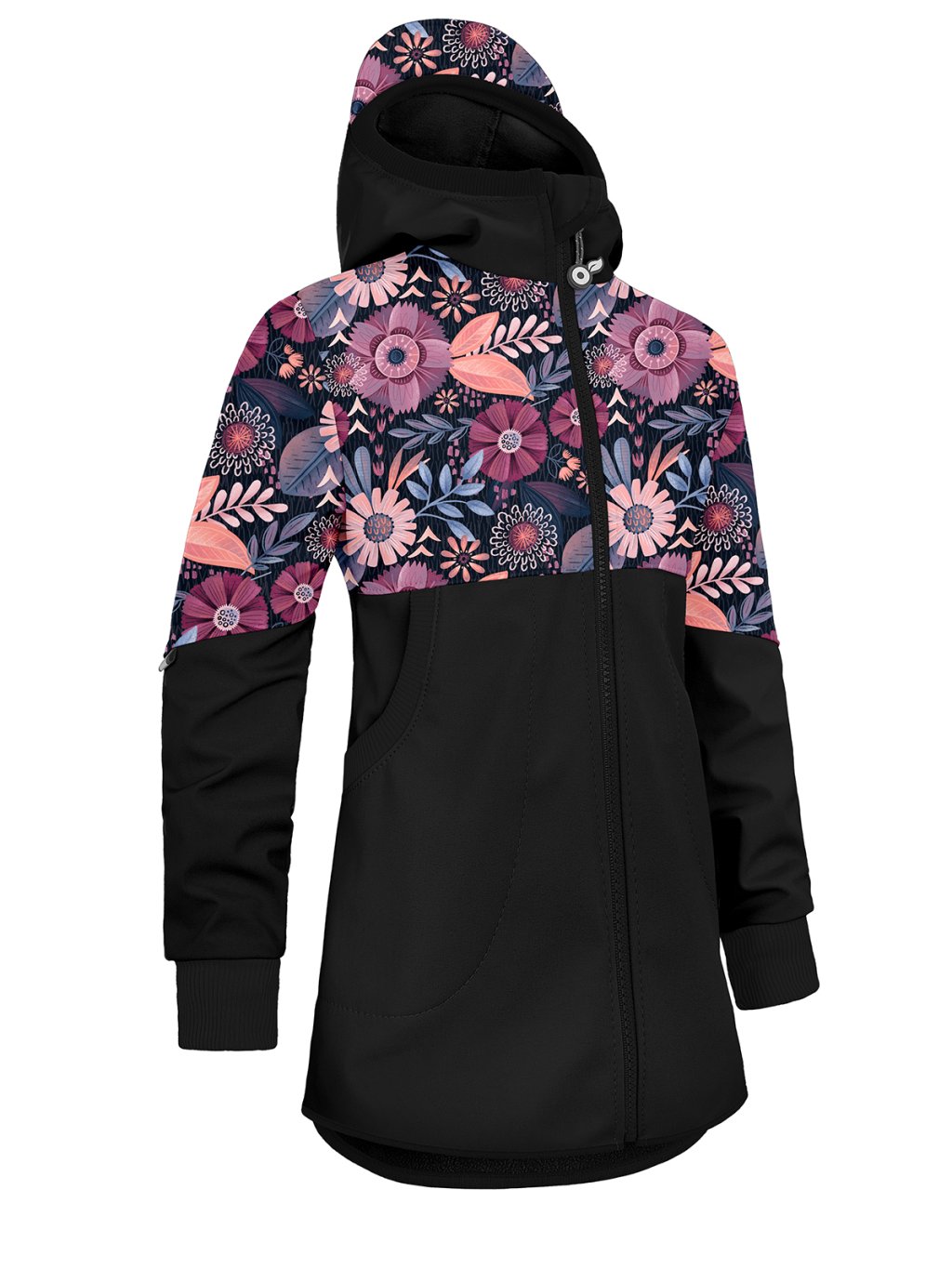 Płaszcz softshell dziewczęcy z polarem Street, Czarny, Magiczne kwiaty