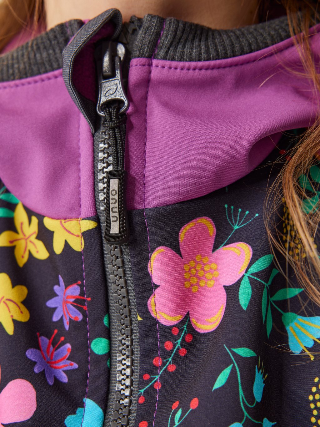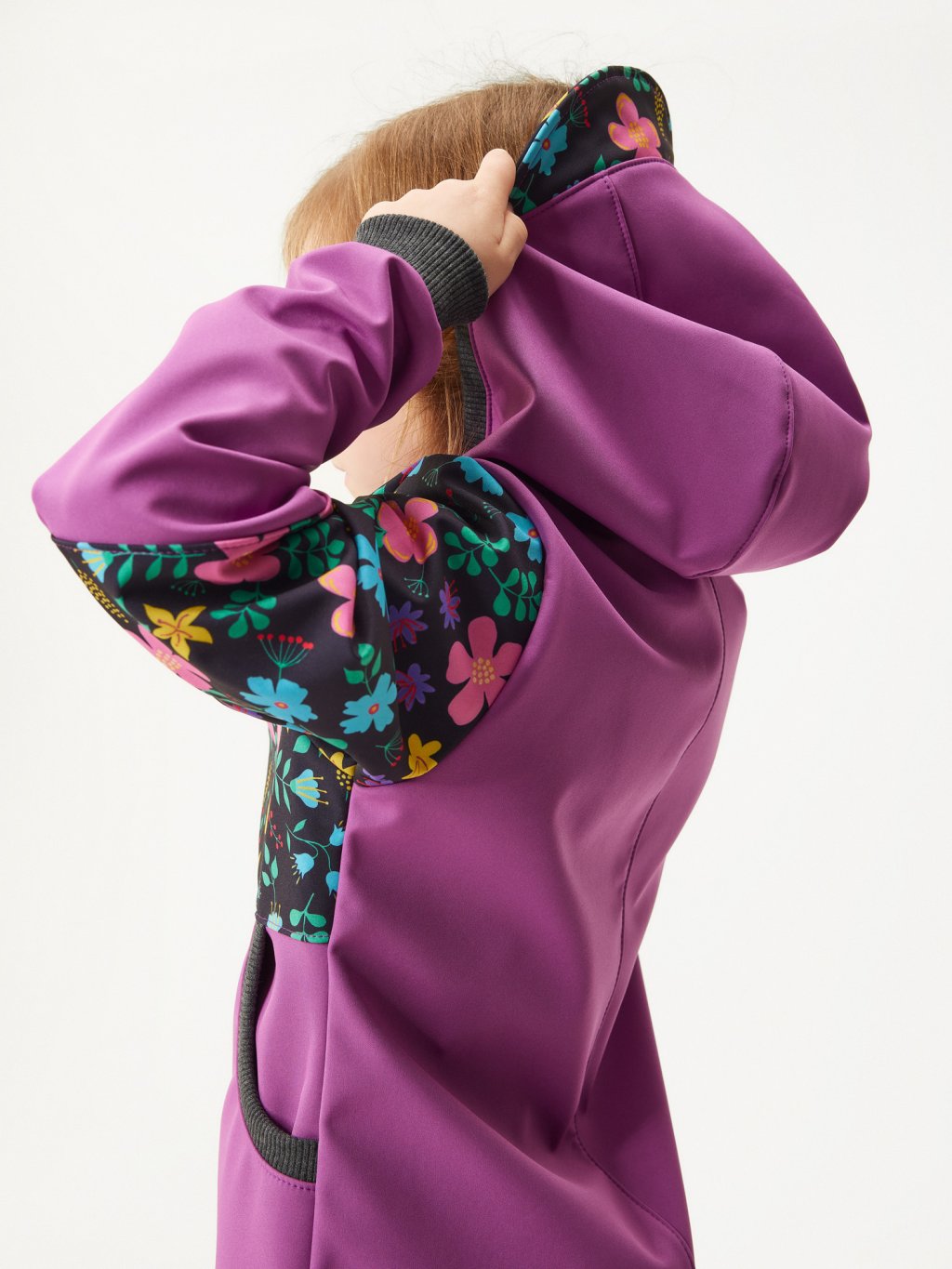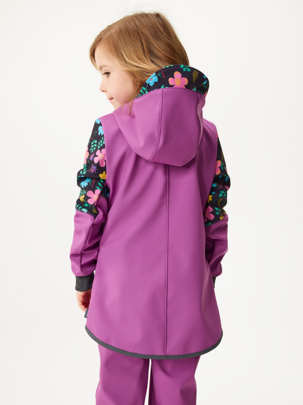 Płaszcz softshell dziewczęcy z polarem Street, Jeżyna, Kwiaty