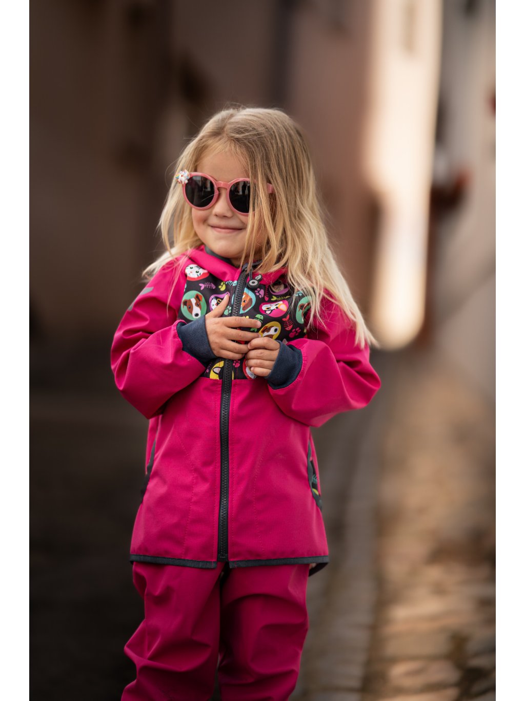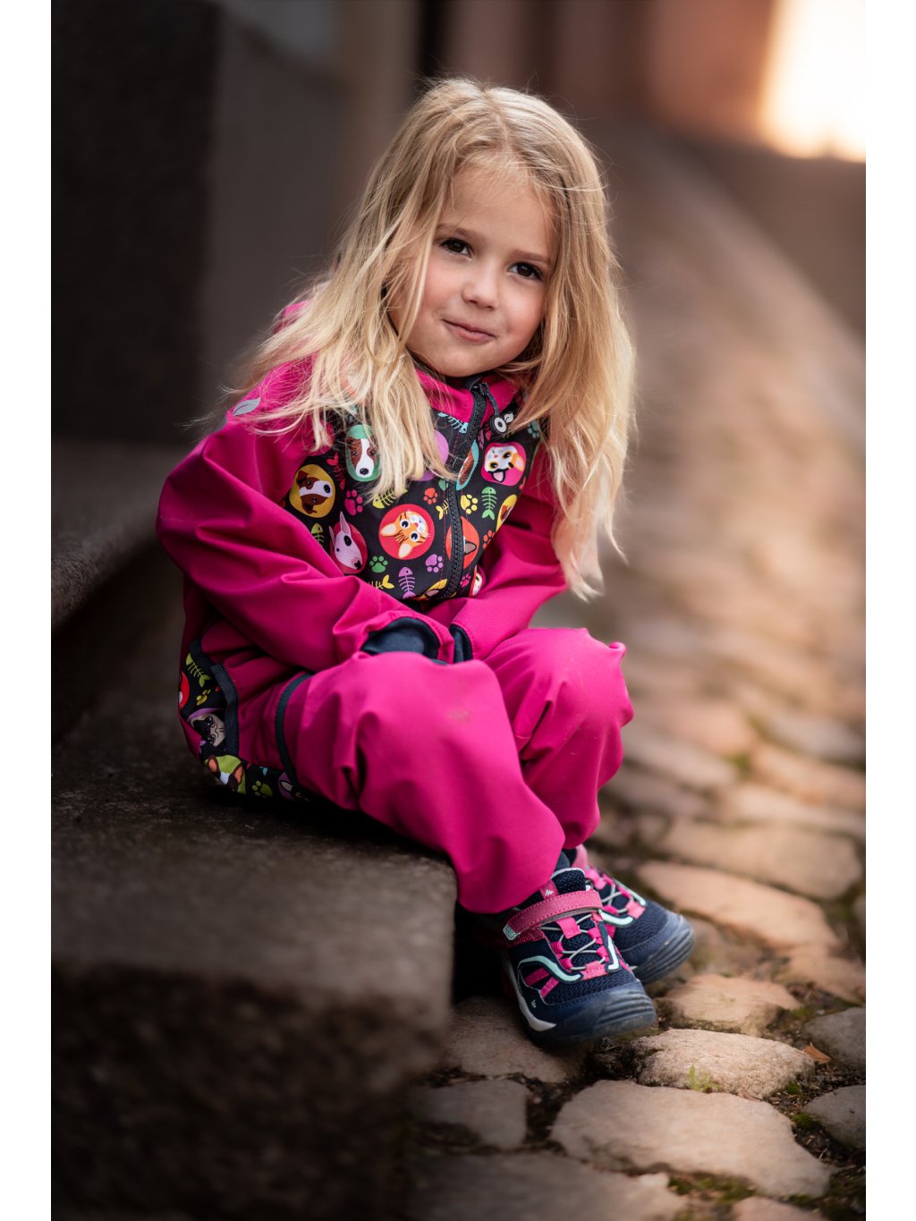 Spodnie softshellowe dla malucha bez ocieplenia Basic, Fuksja