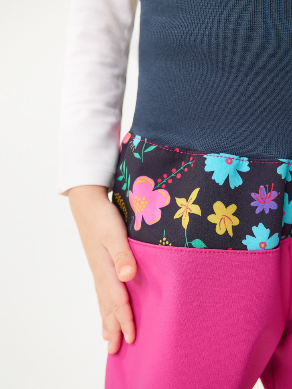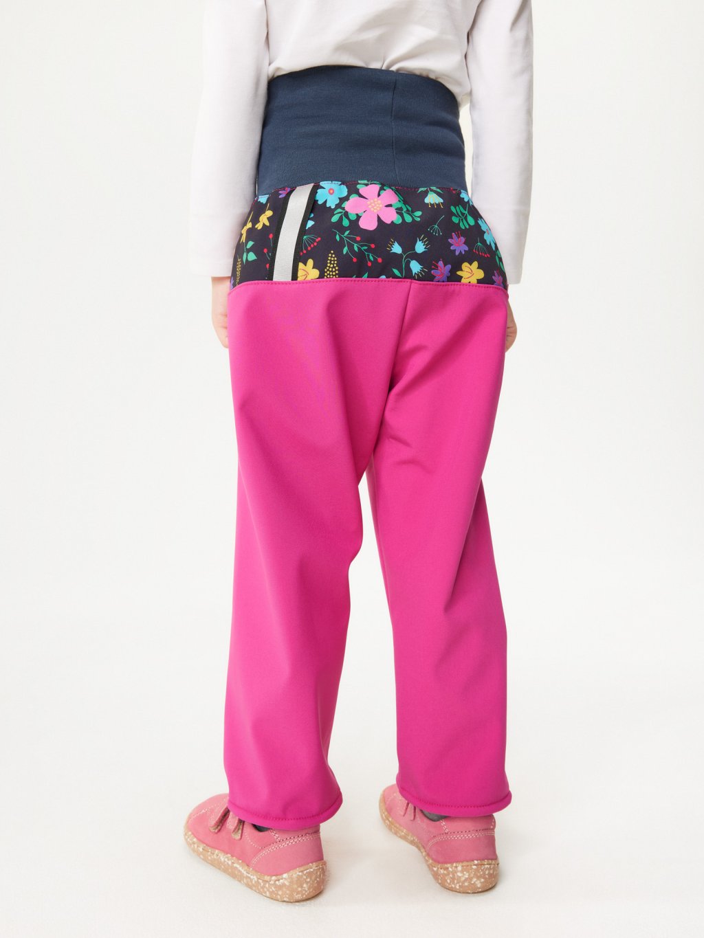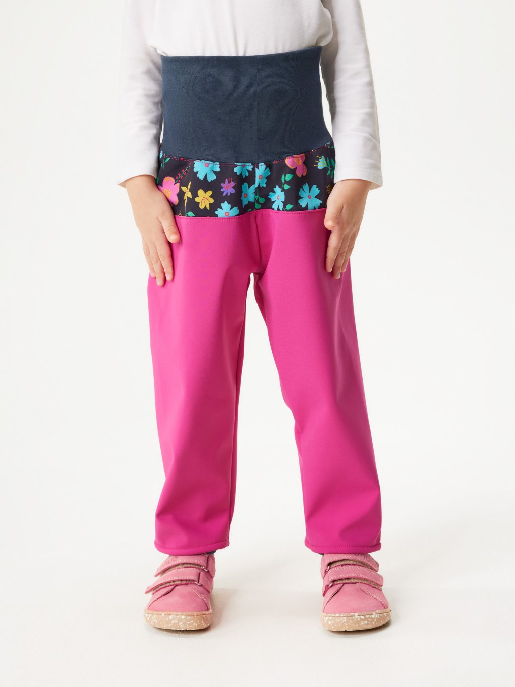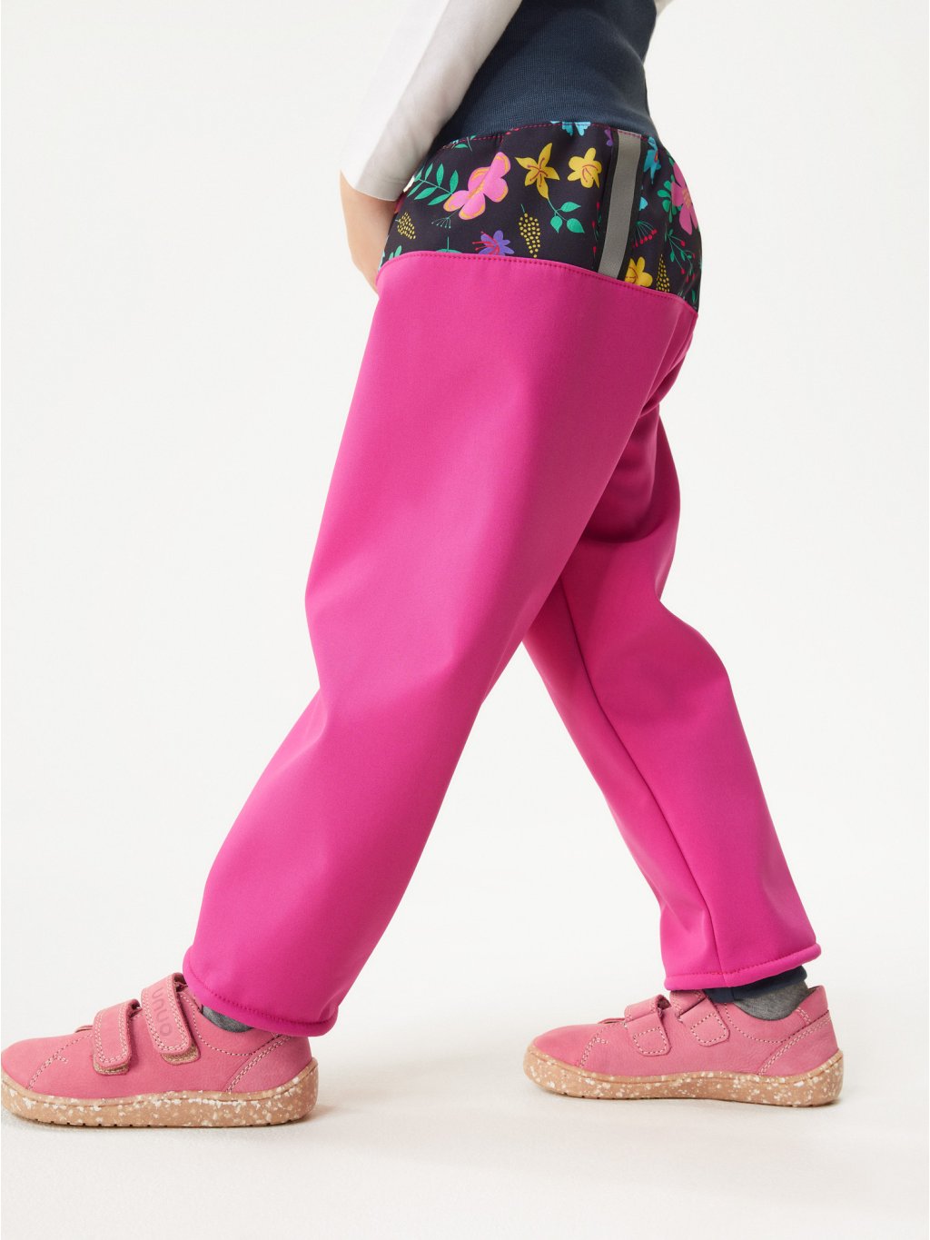 Spodnie softshellowe dla maluchów z polarem Basic, Fuksja, Kwiaty